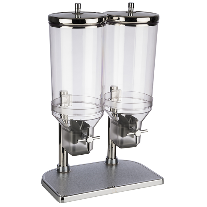 Cerealienspender -FRESH+EASY- , 22 x 35 cm, H: 52 cm , Behälter aus SAN, – Deckel aus 18/8 Edelstahl , Standfuss aus Zinkdruckguss, Inhalt: 2 x 4,5 Liter , Farbe: schwarz ,