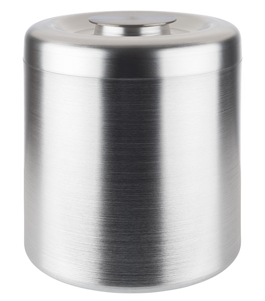 Eisbox , Ø 18,5 cm, H: 20 cm , Aluminium eloxiert , Innenbehälter aus PS , Innenbehälter 3 Liter , Außenbehälter 4,5 Liter , für max. 150 Eiswürfel , Eiswürfel halten bis zu , 5 Stunden bei normaler , Raumtemperatur (21 Grad)
