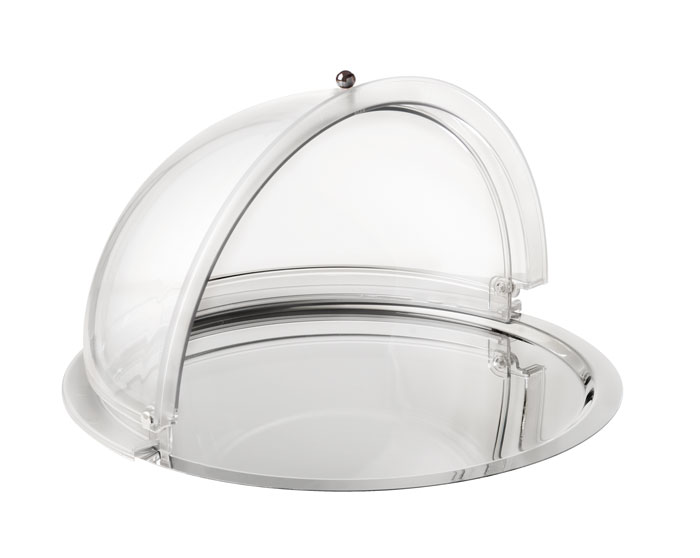Rolltop-Set, 2-teilig , Ø 38 cm, H: 24 cm , 1 Edelstahltablett Ø 38 cm , 1 Rolltophaube Ø 38 cm , rutschfeste Haubenfixierung