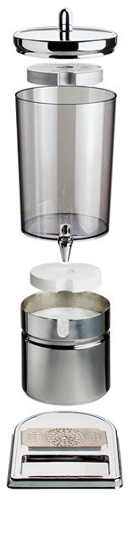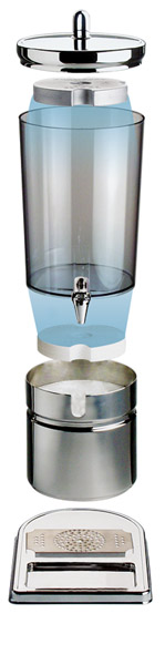 Saftdispenser -TOP FRESH- , 23 x 35 cm, H: 52 cm , 18/8 Edelstahl, SAN , 1 Kühlakku im Standfuß , 1 Kühlakku im Deckel , 6 Liter , inklusive Touchless Adapter ,