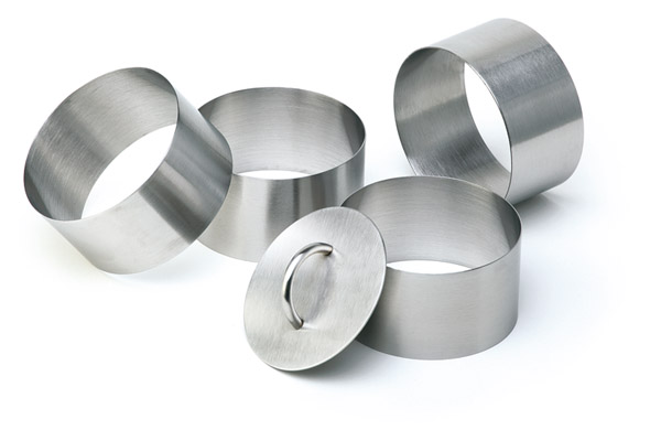 Schaumspeiseringe, 5er Set , Ø 6 cm, H: 4,5 cm , Edelstahl, mattiert, fugenlos , 4 Ringe und 1 Verdichter