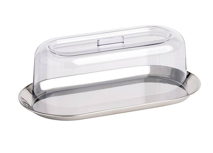 Tablett aus Edelstahl, hochglanzpoliert, Haube aus SAN