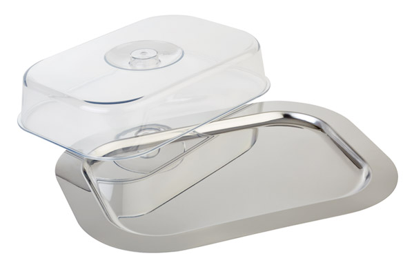 Tablett mit Haube -FINESSE- , 42 x 31 cm, H: 8,5 cm , 18/0 Edelstahl , Haube aus Polystyrol , ohne Griffe