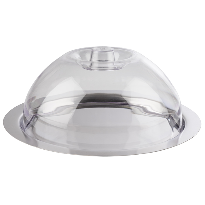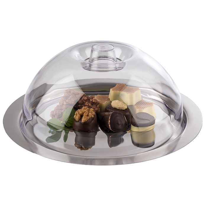 Tablett mit Haube -FINESSE- , Ø 22 cm, H: 9,5 cm , 18/0 Edelstahl , Haube aus Polystyrol , ohne Griffe