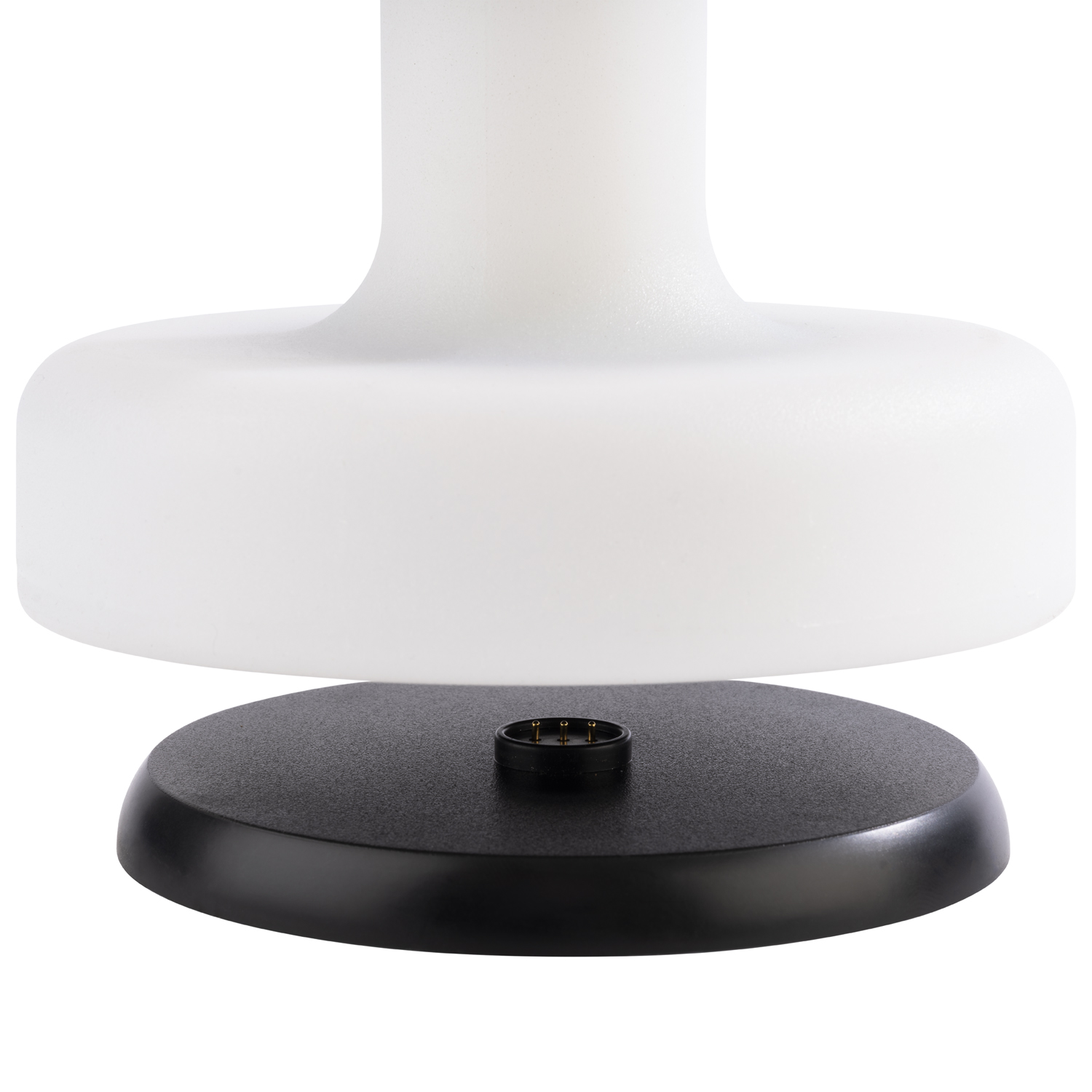 Tischleuchte -FINN- , Ø 13 cm, H: 25 cm , Polyethylen, weiß , 1x LED 1,5 W + 0,8 W RGB , 170 lm / dimmbar in 3 Stufen , CCT: 2.200 / 2.700 / 3.500 K , RGB stufenlos einstellbar , inklusive Ladestation, , USB Ladekabel (ohne Netzteil),, Fernbedienung inkl. Batterie