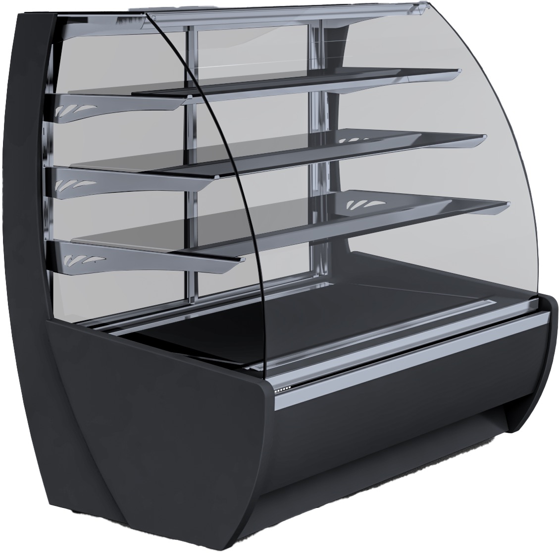 Kühltheke Kameleo Farbe: schwarz – optional andere Farben möglich mit Innenaggregat Dynamische Kühlung Temperaturbereich: +5°C bis +15°C Maße (BxTxH): 705 x 960 /+5 x 1360 +/-10 mm Ausstellungsfläche: 1,2 m2 Volumen: 334 Liter Kältemittel: R290 Nennleistung: 230V / 50Hz Nennleistung: 316 Watt Code: 0,6W Internes Kühlaggregat Dynamische Kühlung automatische Tauwasserverdunstung (Gas – Verdampfung) Frontplatte und Sockelgestell aus Holz – Möglichkeit der Farbwahl Isolierte Seitenteile und – leisten aus Holz – Farbauswahl möglich (Farbmuster) Glasseitenteile (oder Trennwand aus VSG in Geräten für modulare Systeme) Gebogene und klappbare Frontverglasung Umweltfreundliche Isolierung aus Polyurethanschaum internal frame painted silver, gold or black 3 Glasauslagen auf Gestell, höhen – und neigungsverstellbar Untere Ablage aus rostfreiem Blech hintere Schiebetür mit VSG Verglasung obere Innenbeleuchtung + Beleuchtung für jede Ablage – LED – Leuchtstoffröhre (für Backwaren) automatische Abtauung Automatische Tauwasserverdunstung Elektronische Temperaturregelung mit Digital – Display Tonsignal zur Meldung der Verunreinigung des Verdunsters oder der Blockade des LüftersTemperaturbereich: +5°C/+15°C Aggregat: intern Dynamische Kühlung Gebogene u. klappbare Frontverglasung Beleuchtung mit LED – Leuchtstoffröhre für Backwaren Umweltfreundliche Isolierung aus Polyurethanschaum 3 Glasauslagen auf Gestell, höhen – und neigungsverstellbar hintere Schiebetür mit VSG Verglasung automatische Abtauung Automatische Tauwasserverdunstung Elektronische Temperaturregelung mit Digital-Display