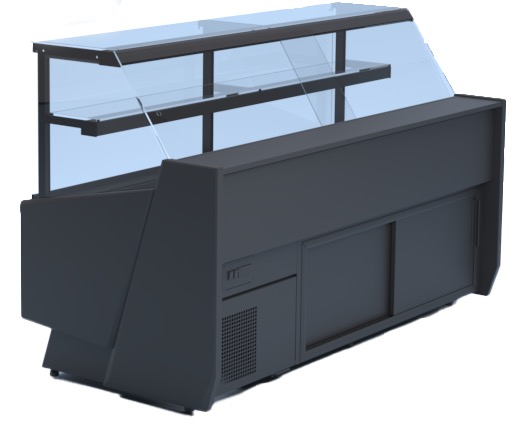 Kühltheke Sumba Farbe: schwarz – optional andere Farben möglich mit Innenaggregat Statische Kühlung (zwei Verdampfer) Temperaturbereich: +3°C bis +10°C Maße (BxTxH): 2040 x 940 x 1260 +/-10 mm Ausstellungsfläche: 1,3 m2 Volumen: 260 Liter Kältemittel: R290 Nennleistung: 230V / 50Hz Nennleistung: 392 Watt Kälteleistung: 350 isolierte Seitenteile aus Kunststoff + Glasseitenteile – Farbauswahl möglich (Farbmuster) Kühlaggregat innen Stille Kühlung (zwei Verdampfer) automatische Tauwasserverdunstung (Gas – Verdampfung) Gehäuse mit blechbeschichtetem Unterteil von der Serviceseite, aus weißbeschichtetem Blech Verblechung der Frontbasis und Frontpaneel aus beschichtetem Blech in freier Farbe – frei gewählt (Muster) Umweltfreundliche Isolierung aus Polyurethanschaum Auslage – Raum aus rostfreiem Blech Unterbau aus weißbeschichtetem Blech hintere Tür der Lagerkammer – gleitend (in Modul 1.0 und Ecken – weit zu öffnen) Granitarbeitsplatte grau (Stärke: 20mm) Innengestell und eloxierte Alu – Profile silbern oder golden (Farbmuster) Drehflügel – Frontscheibe gerade Nachtabdeckung aus Plexi Beleuchtung mit LED – Leuchtstoffröhre (Farbauswahl möglich: weiß, für Backwaren oder Fleischwaren „deep pink“) isolierte Seitenteile aus Kunststoff + Glasseitenteile – Farbauswahl möglich (Farbmuster) automatische Abtauung automatische Tauwasserverdunstung (Gas – Verdampfung) Elektronische Temperaturregelung mit Digital – Display Tonsignal zur Meldung der Verunreinigung des Verdunsters oder der Blockade des LüftersTemperaturbereich: +3°C/+10°C Aggregat: intern Stille Kühlung (zwei Verdampfer) Umweltfreundliche Isolierung aus Polyurethanschaum Nachtabdeckung aus Plexi Granitarbeitsplatte grau (Stärke: 20mm) Auslage – Raum aus rostfreiem Blech automatische Abtauung Tauwasserablauf in Auffangbehälter Elektronische Temperaturregelung mit Digital-Display
