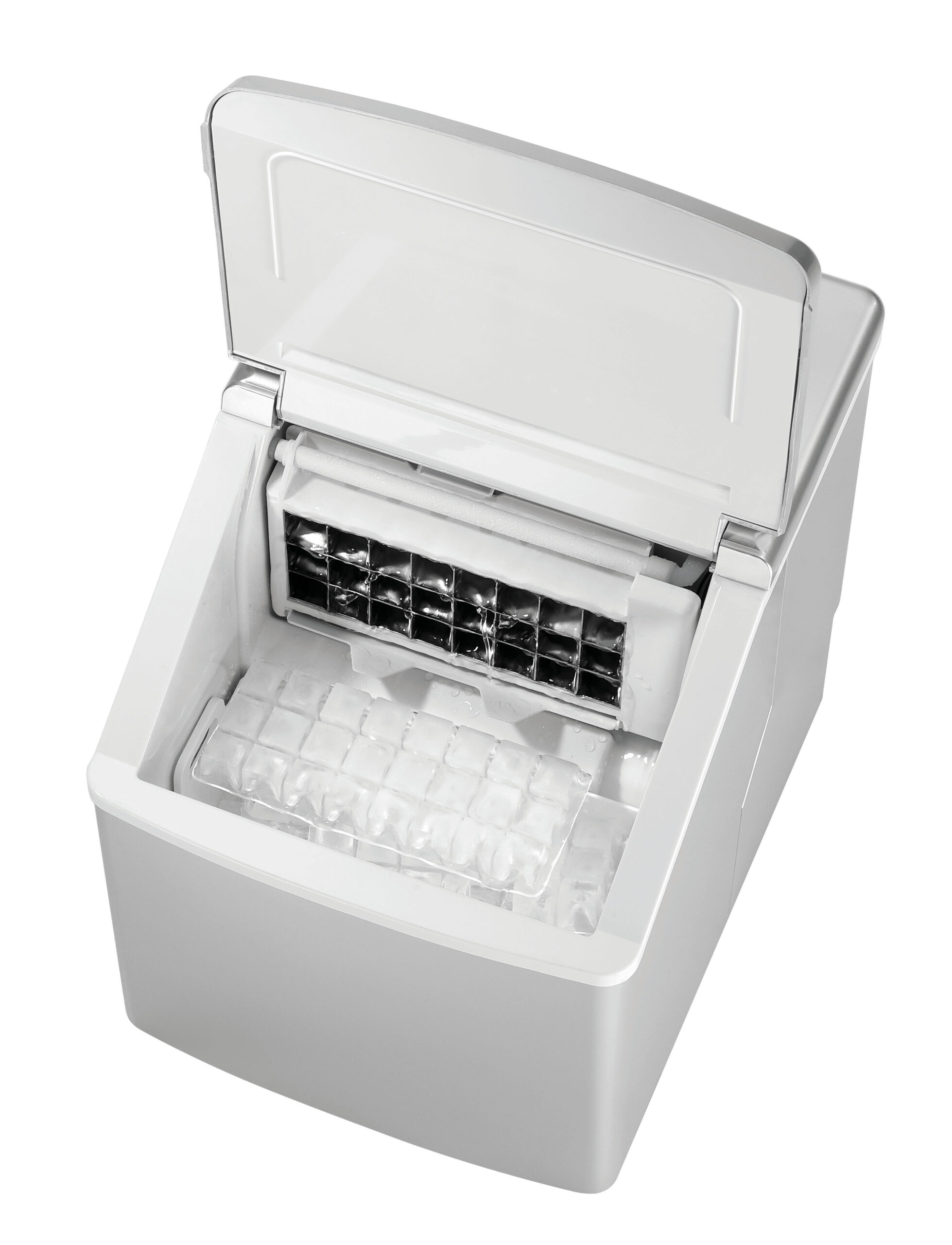 Kompaktes Gerät für die Produktion von klaren Eiswürfeln • Ideal für Kleingastronomie oder Thekenbereich • Max. Eisproduktion ca. 15 kg/24 Std. • 24 Eiswürfel je Arbeitsgang • Tankfüllung 2,3 Liter • Bis zu 360 Eiswürfel pro Tankfüllung • Vorratsbehälter für 1 kg Eiswürfel • Gehäuse aus Kunststoff • Mit Wasserablauf • Kühlmittel R600a