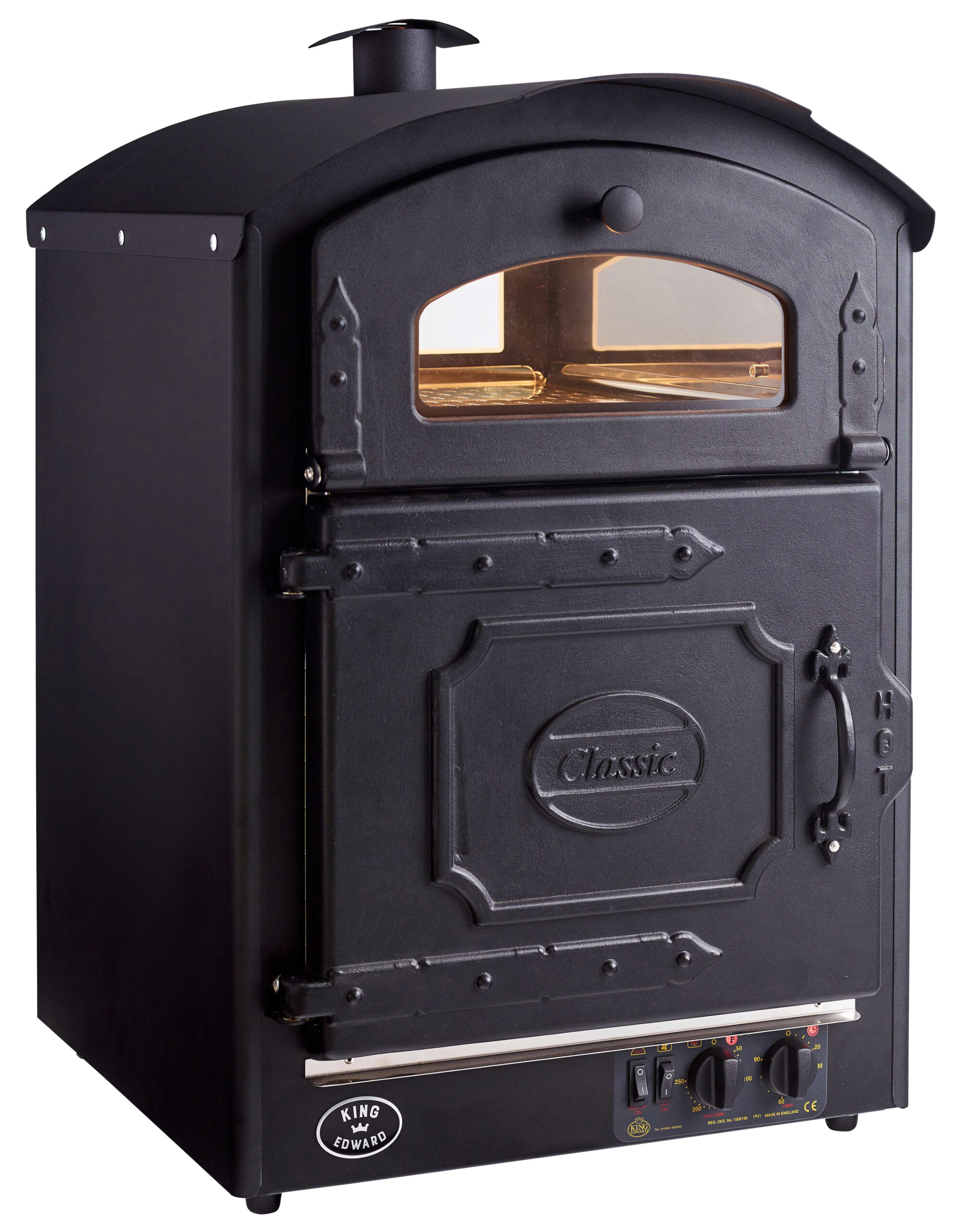 ca. 50 Kartoffeln backen + ca. 50 Kartoffeln warmhalten • effizienter Heißluftofen für verlässliche und gleichmäßige Kochergebnisse • Schwarz pulverbeschichtet • Umluftgebläse • Ein-/Ausschalter • Regler • Timer bis 90 Min. • beleuchtetes Warmhalte-Display • inkl. 3 Roste • Rückseite mit Schaufenster und schwarzer Menü-Tafel aus Glas für den Thekeneinsatz