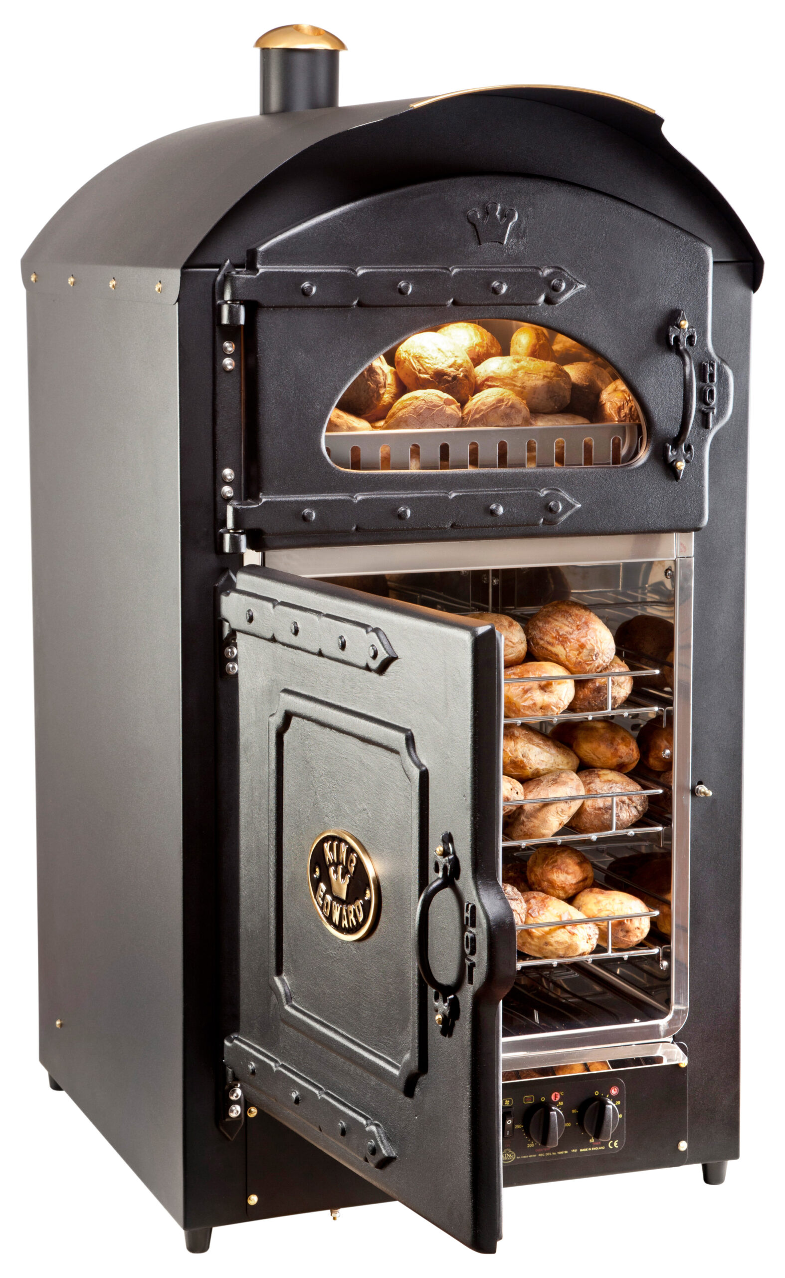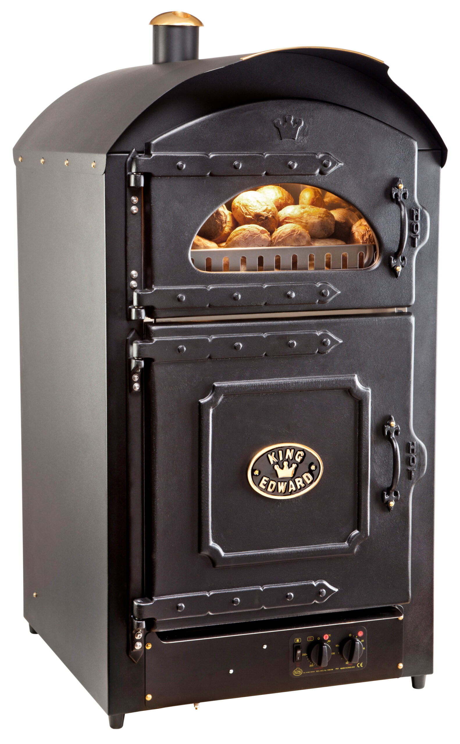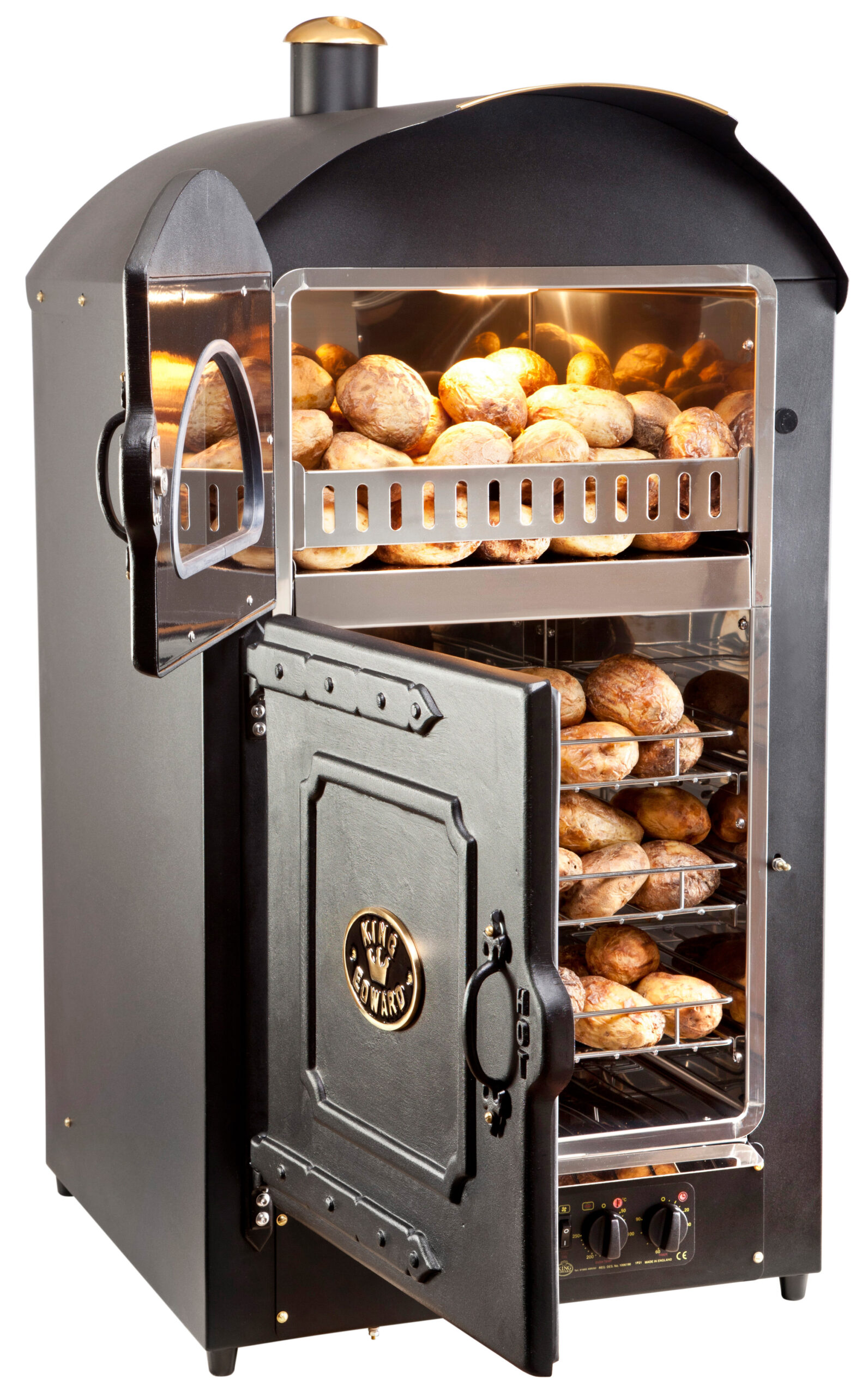 ca. 100 Kartoffeln backen + ca. 100 Kartoffeln warmhalten • effizienter Heißluftofen für verlässliche und gleichmäßige Kochergebnisse • Schwarz pulverbeschichtet • Umluftgebläse • Ein-/Ausschalter • Regler • beleuchtetes Warmhalte-Display • inkl. 3 Gitterkorb-Roste