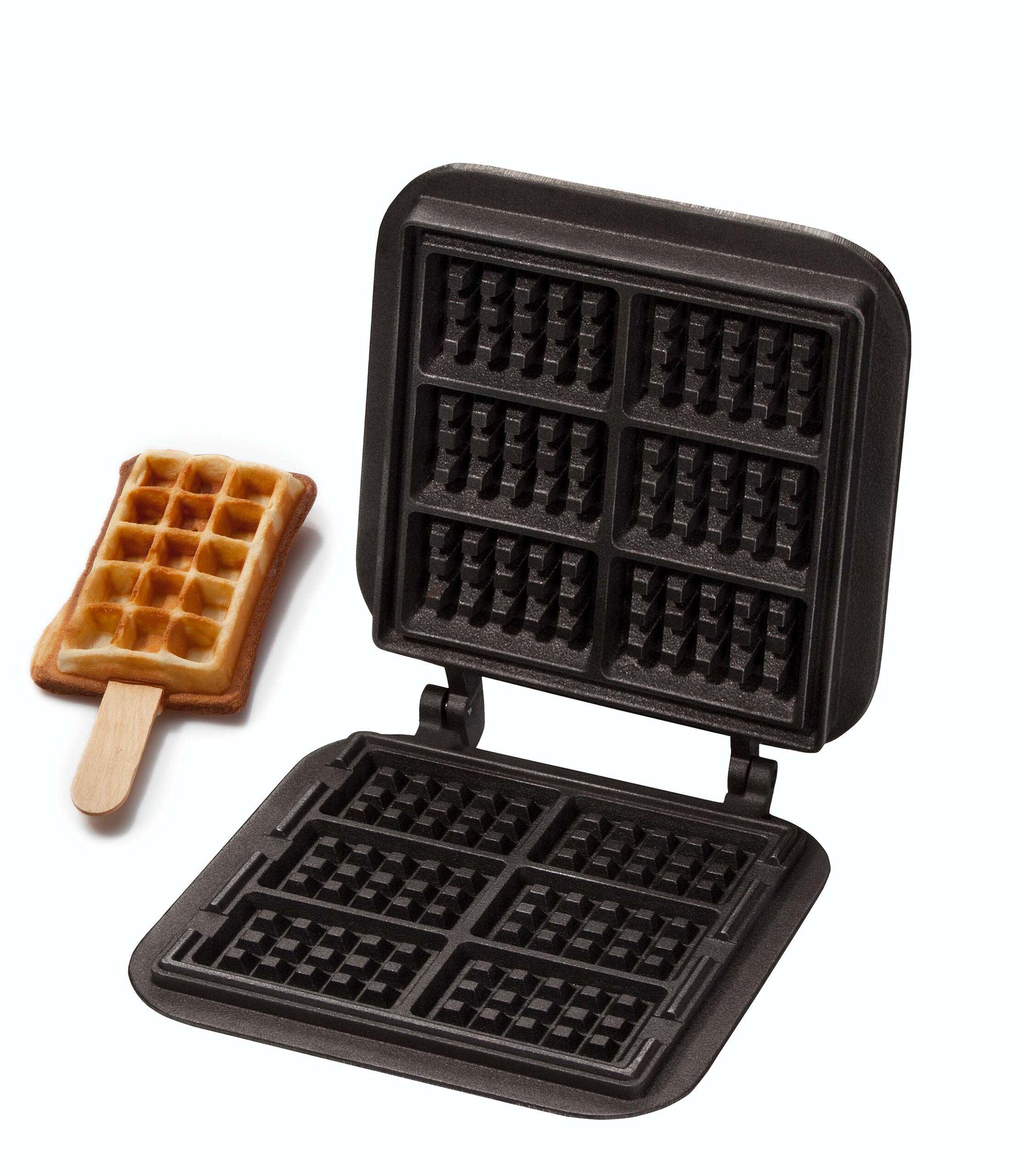 Kleine Waffeln am Stiel in der traditionellen, eckigen Waffelform. Ideale Portionsgröße für Kinder oder den kleinen Heißhunger. • Für 6 Waffeln je 65 x 100 x 30 mm • Massives Gusseisen • Nicht geeignet für Thermocook Twin