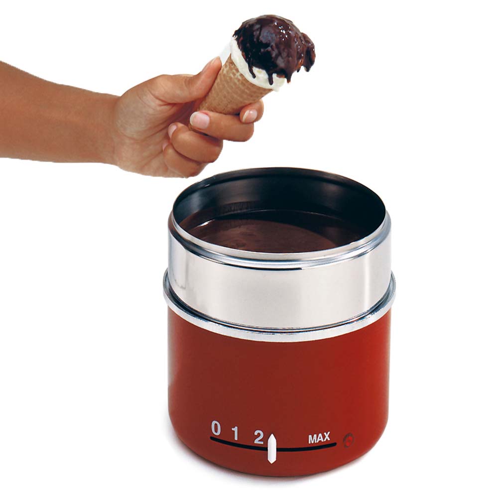 Zum Dippen von Eis oder Waffeln • Äußerst platzsparend • Kapazität 1,8 Liter • Ideale Temperatur zum Warmhalten von Schokolade: Thermostatische Regelung bis max. 30° bis 40°C • Trockenbeheizt ohne Wasserbad: Pflegeleicht und einfach in der Anwendung