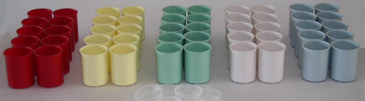 50 wiederverwendbare Portionsbecher für den Neumärker Steamblend • Mikrowellen- und spülmaschinengeeignet • 5 verschiedene Farben zur besseren Sortierung und Wiedererkennung im Tiefkühler • Je 10 Becher in Rot, Grün, Gelb, Weiß, Grau • Material Kunststoff mit transparentem Kunststoffdeckel