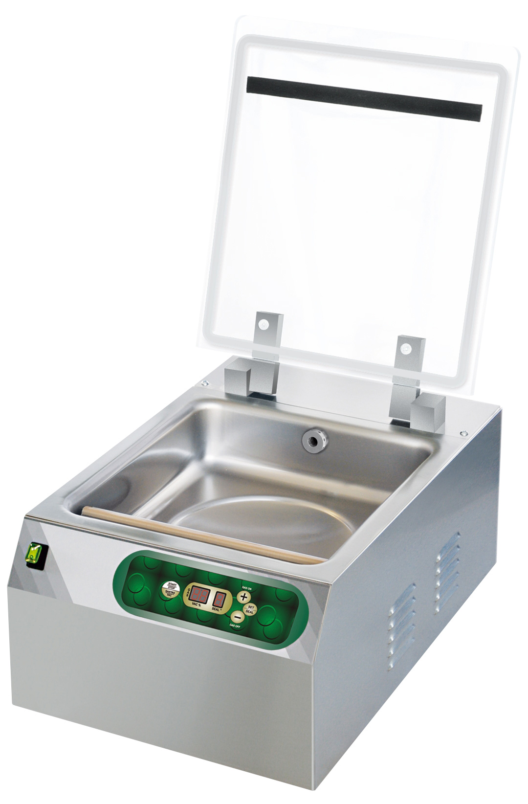 professioneller Vakuumierer für den intensiven Einsatz in der Restaurant-Küche • bestens geeignet für das Vakuumieren von Flüssigkeiten • Gehäuse Edelstahl • digitale Steuerung und Display • automatischer Arbeitszyklus • Pumpe 6 m³/h (100 Liter/Min.) • Kammer 310x350x120 mm • Schweißleiste 300 mm