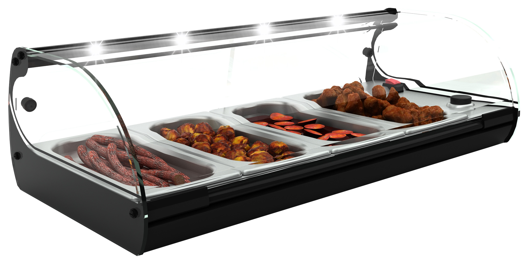 30°C bis 90°C im Schalenbereich • Schiebetüren auf der Rückseite • langlebige LED-Beleuchtung für maximale Aufmerksamkeit • Absatzsteigerung durch maximale Sichtbarkeit der Produkte • inkl. GN-Schalen