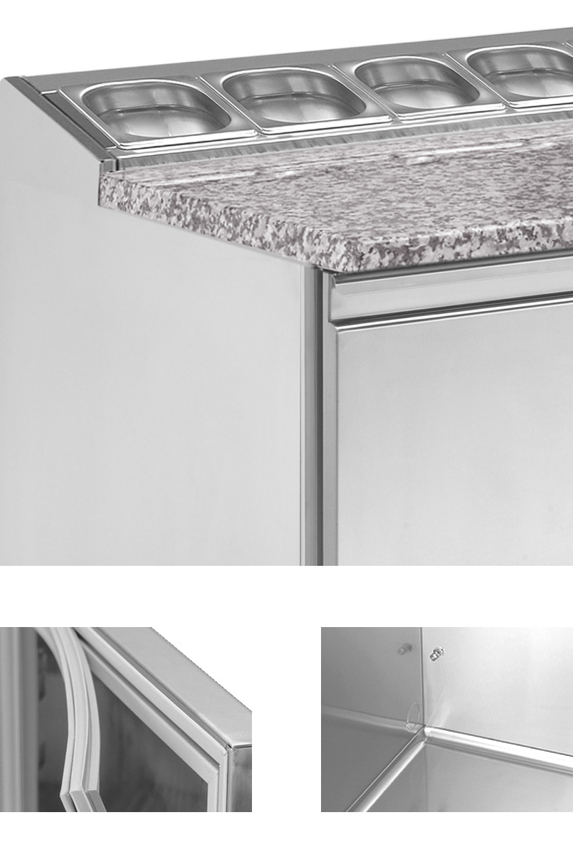 • 3 x Volltür, selbstschließend, nicht überstehend, CNS-Griffleiste, Magnetdichtung (werkzeugfrei wechselbar)