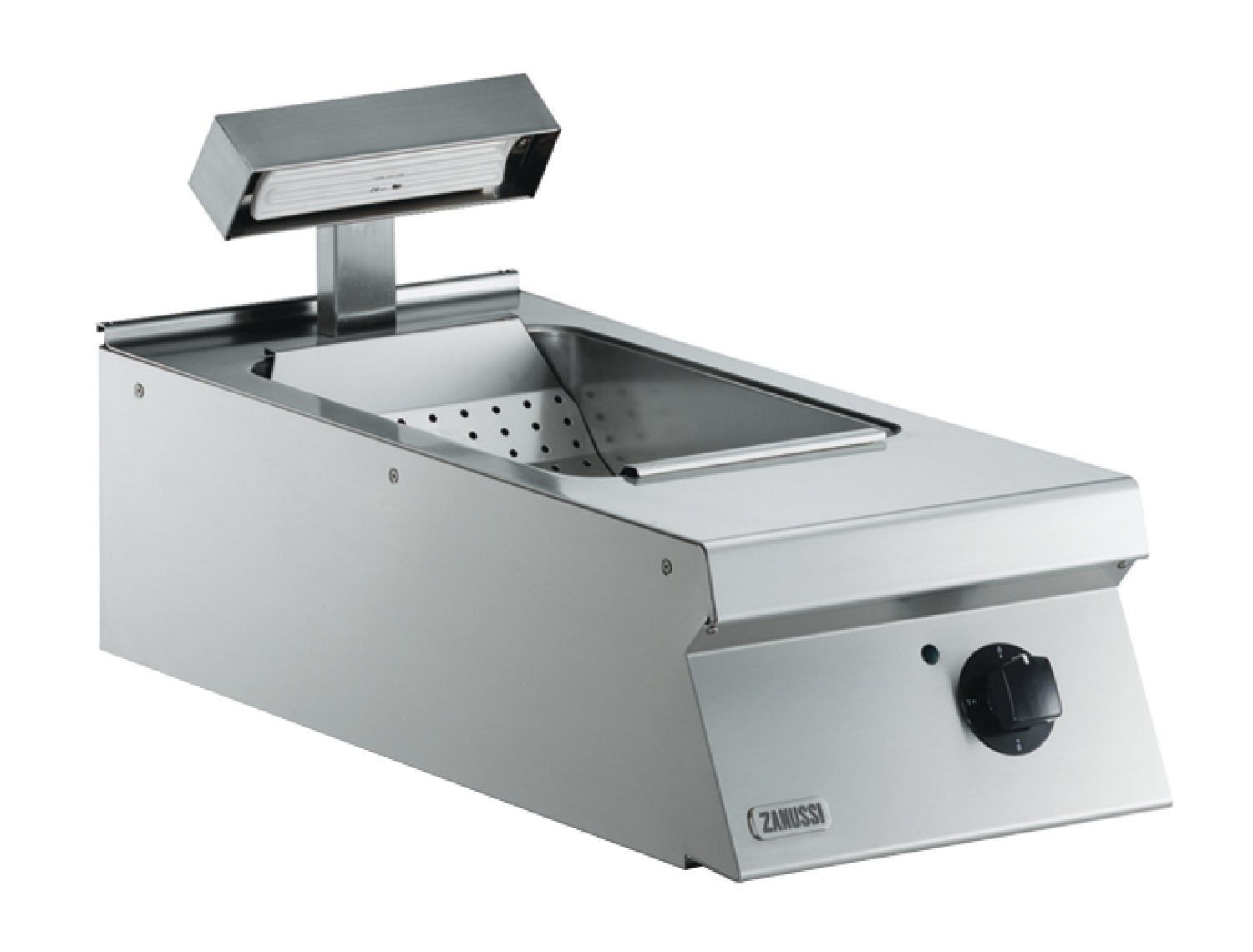 - Infrarot-Warmhaltelampe (hinter dem Becken), eingelegtes Lochblech