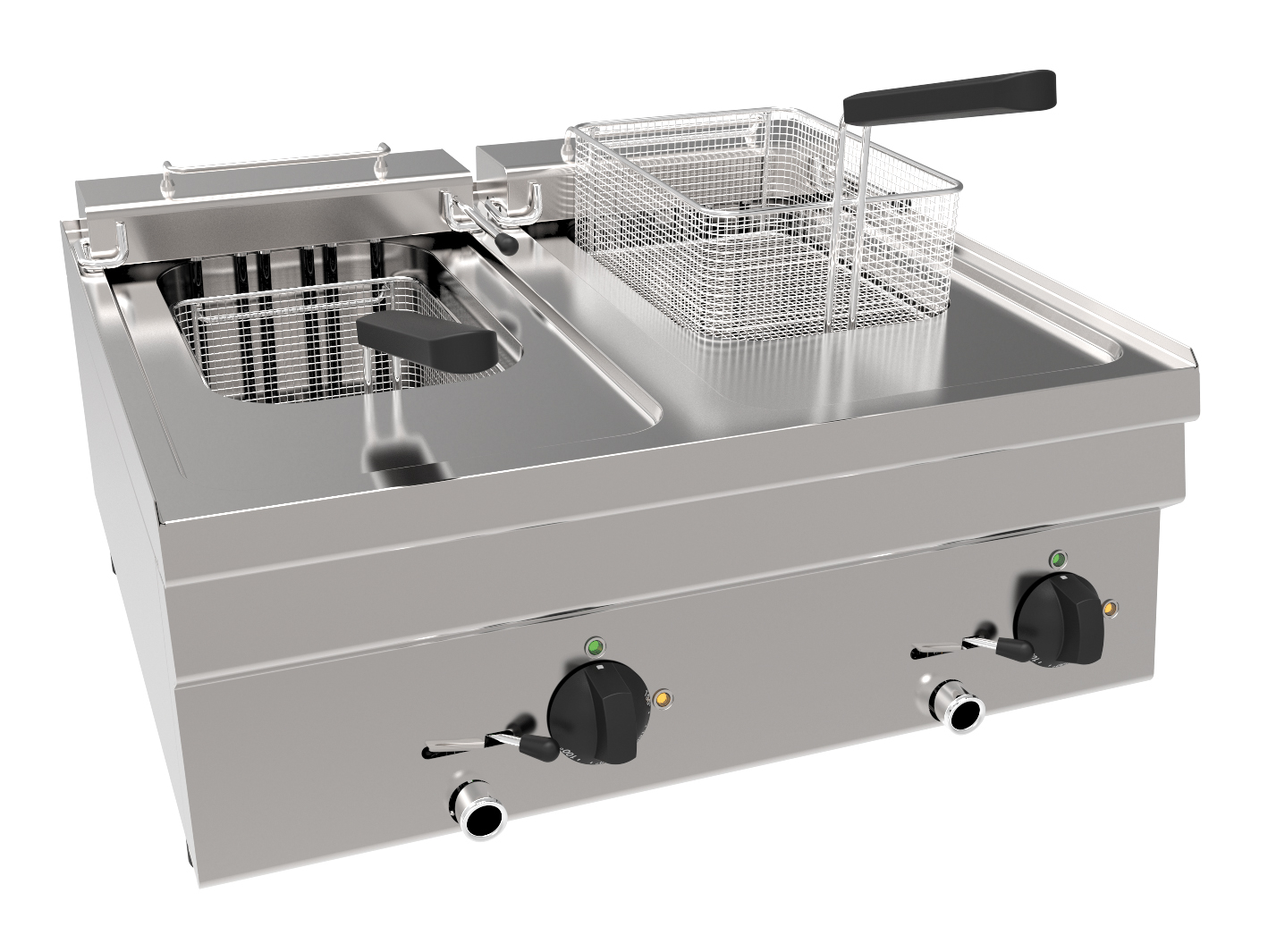 | Serienzubehör | 2 x Fritteusendeckel;2 x Fritteusenkorb, mit Holzgriff, B x T x H in mm: 210 x 260 x 105 |