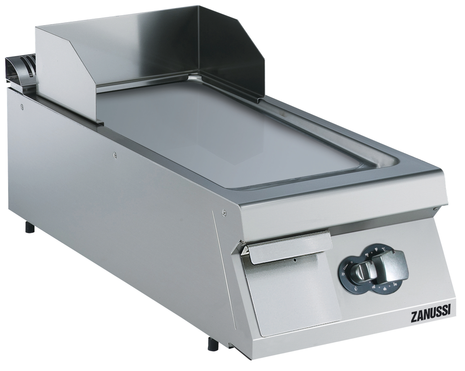 - Piezo-Zündung, selbststabilisierende Flamme, 2 Abzweigungen mit 4 Flammenlinien, thermostatische Temperaturregelung, 1 x Heizzone, Bratfläche tiefgezogen, für Fettablauf 1,5° nach vorn geneigt