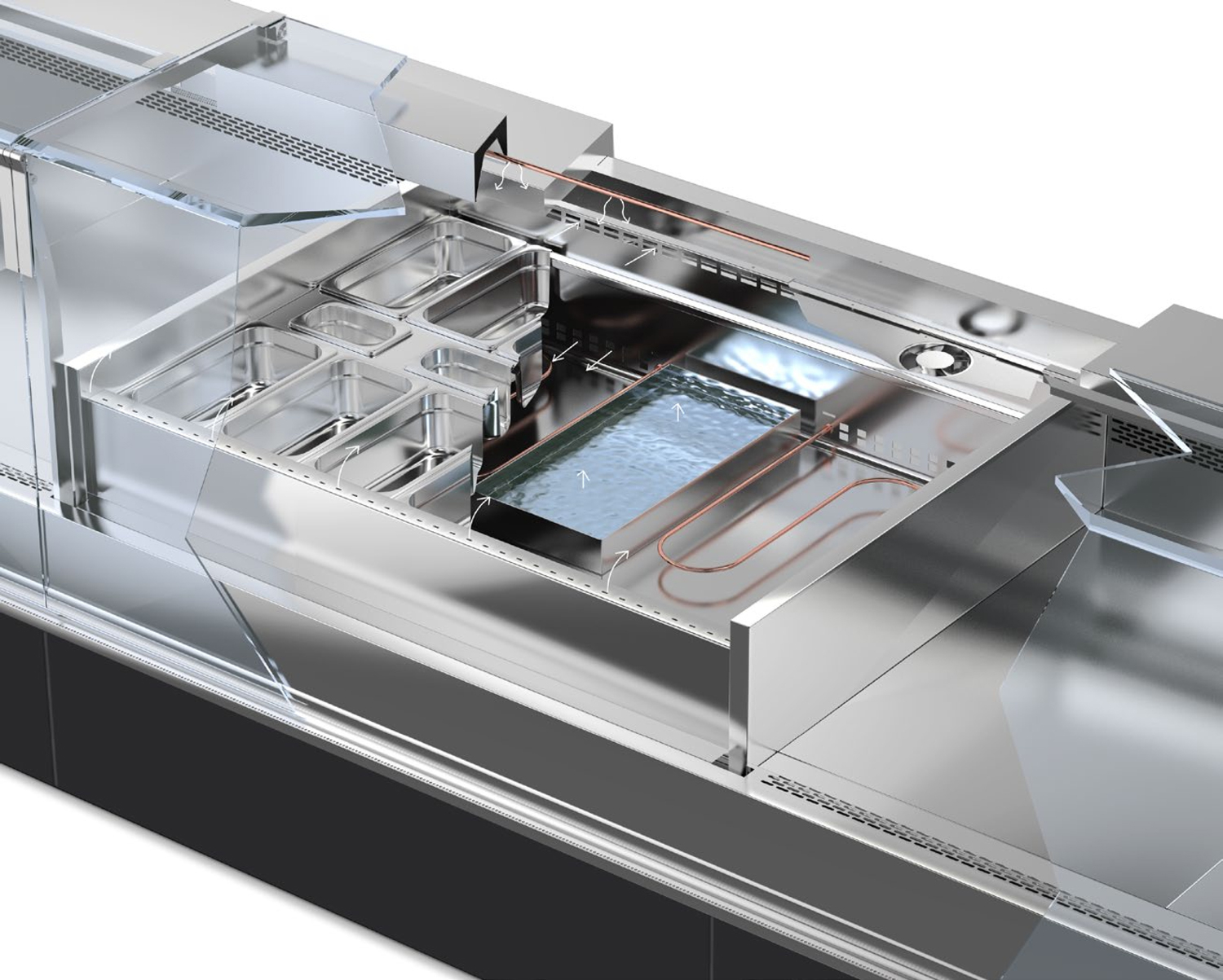 - Wärmelampe (unter oberer Abdeckung), gesondert schaltbar