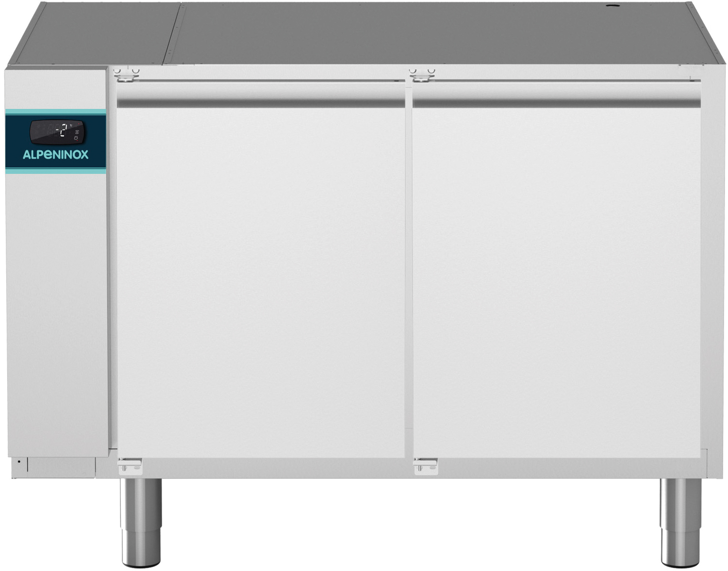 Auch mit GN 1/1-Teleskopschubladen in der Aufteilung 2 x 1/2, 3 x 1/3 oder 1 x 1/3 + 1 x 2/3 bestückbar. Die Position für eine optionale Bohrung des Reinigungsablaufes ist am Geräteboden durch eine tiefgezogene Markierung erkennbar. Auch mit Installationsfach auf der rechten Seite lieferbar. Bitte sprechen Sie uns an.