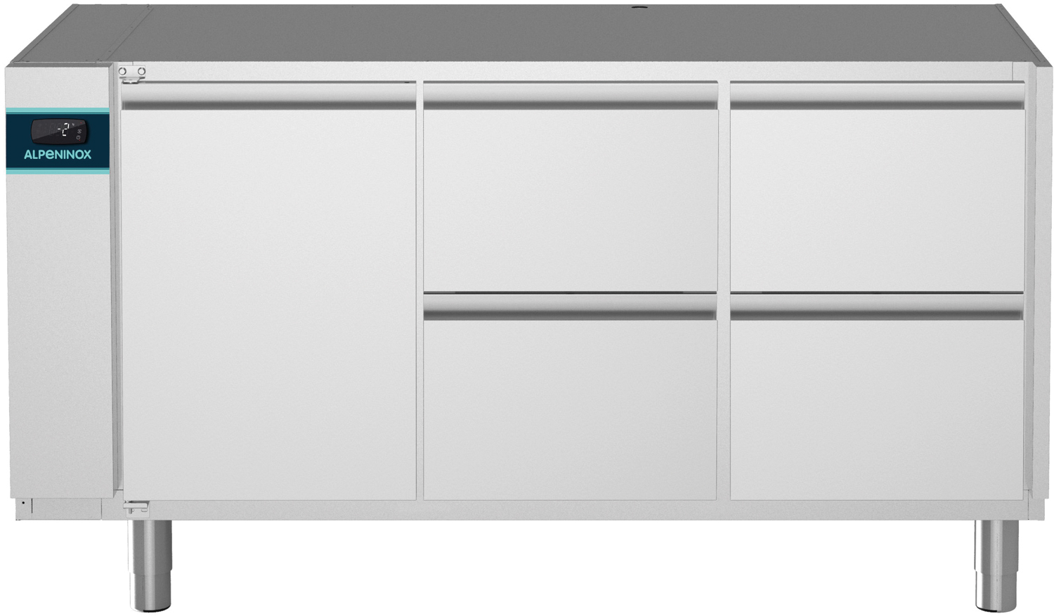 - 4 x CNS-Halbschublade mit Teleskopzug, 3-Kammer-Ballondichtung, CNS-Griffleiste