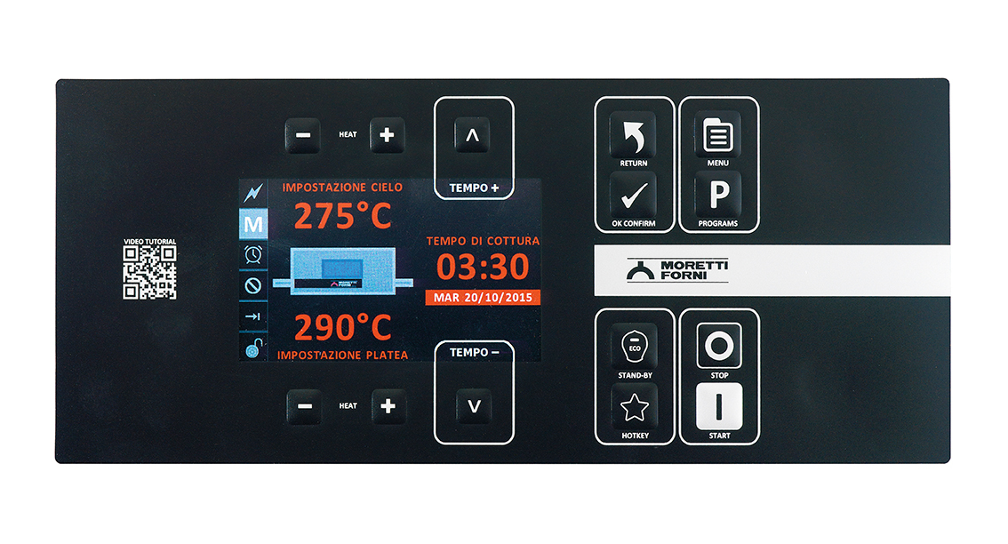 - TFT-Touch-Farb-Display (5,0 Zoll), multilingual, 100 Programme, Adaptive-Power®, Steuerung für Start / Stopp, kontinuierlicher Backzyklus, Block-Funktion, Fehlerdiagnose / -meldedisplay, elektronische Bandgeschwindigkeitskontrolle, einstellbares Luftvolumen, 2 x Thermoelement, WiFi-Schnittstelle, USB-Schnittstelle, SmartBaking-App
