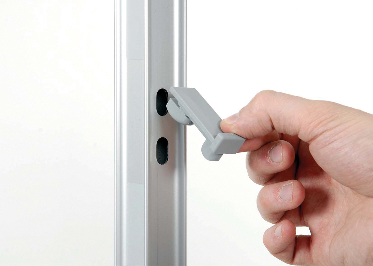 - Regalstützen aus eloxiertem Aluminium (20 µm), Befestigungen, Schrauben usw. nicht sichtbar, Lamellen aus Polyethylen (PE-HD), hellgrau