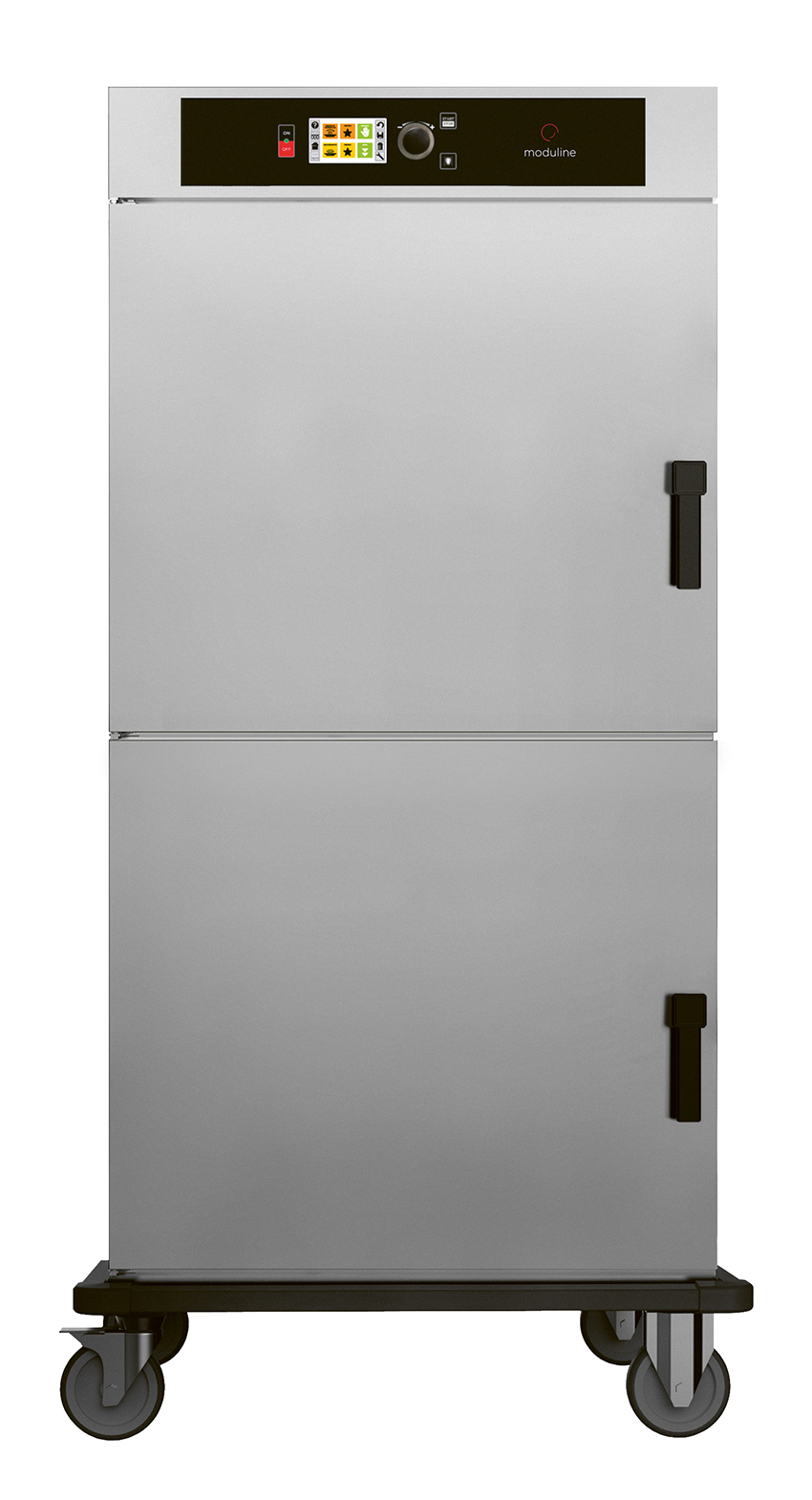 - LED-Display (4,3 Zoll), Touch-Screen, multilingual, Hauptschalter, Taste für Start / Stopp, Zeit-, Temperatur- und Feuchtigkeitsregelung, Startverzögerung möglich, akustisches Signal am Ende des Zyklus, Warmhaltefunktion