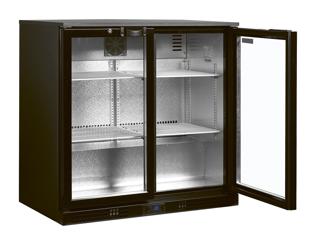 • 2 x Glas-Drehtür, Sicherheits-Doppelverglasung, selbstschließend, Schloss (pro Tür), Griffmulde, Türanschlag links | rechts, Magnetdichtung (werkzeugfrei wechselbar)