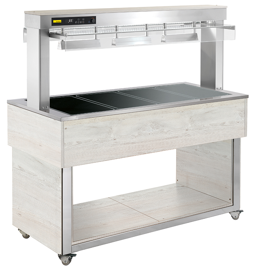 • Hartglas-Warmhalteplatten, Plexiglas-Hustenschutz, feststehend, Halogenheizstrahler (unter oberer Ablage)