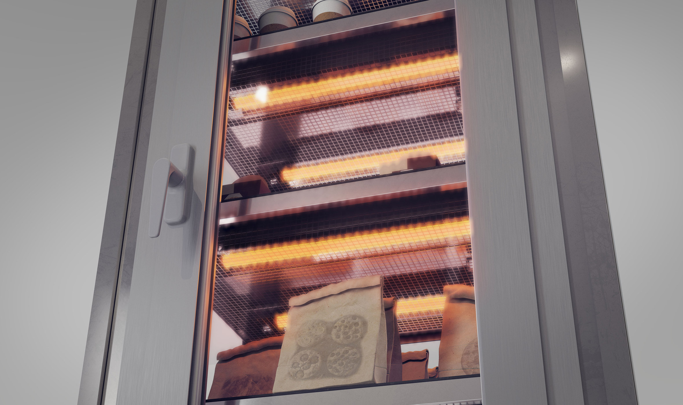 • 2 x Halogen-Wärmebrücke (250 W je Brücke) (unter der Decke und jedem Regalboden)