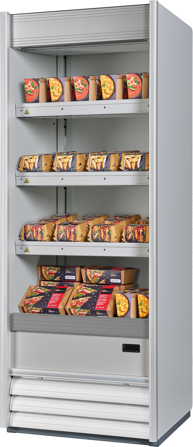 • 2 x Halogen-Wärmebrücke (500 W je Brücke) (unter der Decke und jedem Regalboden)
