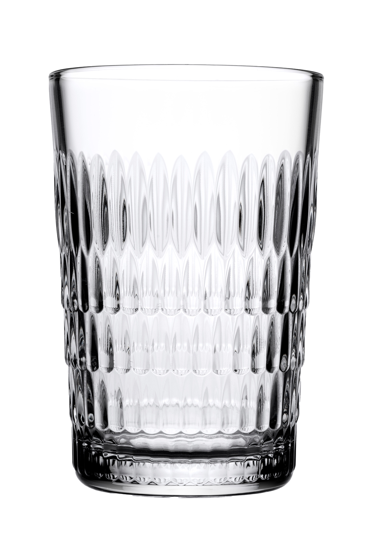 Das ästhetische, moderne Glas mit umlaufendem Tropfenrelief setzt Ihre Getränke besonders in Szene.Das durable Glas mit dickem Boden ist nicht nur ein optisch, sondern auch haptisch ein Highlight. Es liegt angenehm in der Hand und hat einen schön gerundeten Rand.
