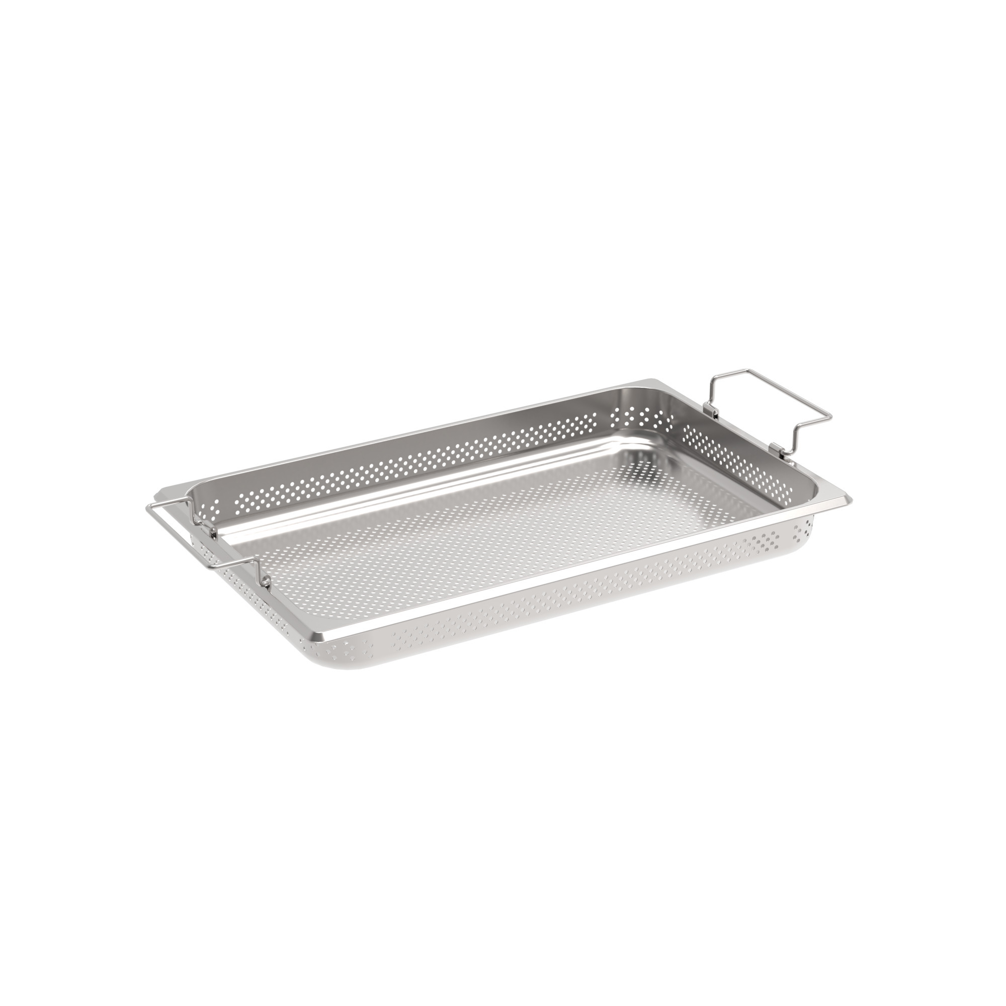 Der robuste, gelochte GN-Behälter – ideal zur Verwendung in der Spüle (z.B. Reinigung von Obst und Gemüse), zum Garen im Kombidämpfer oder zum Einsetzen in geschlossene GN-Behälter (je nach Ausführung) – in nahezu jeder Größe und Tiefe, durchgängig kompatibel in allen GN-Systemen und -Produkten.
