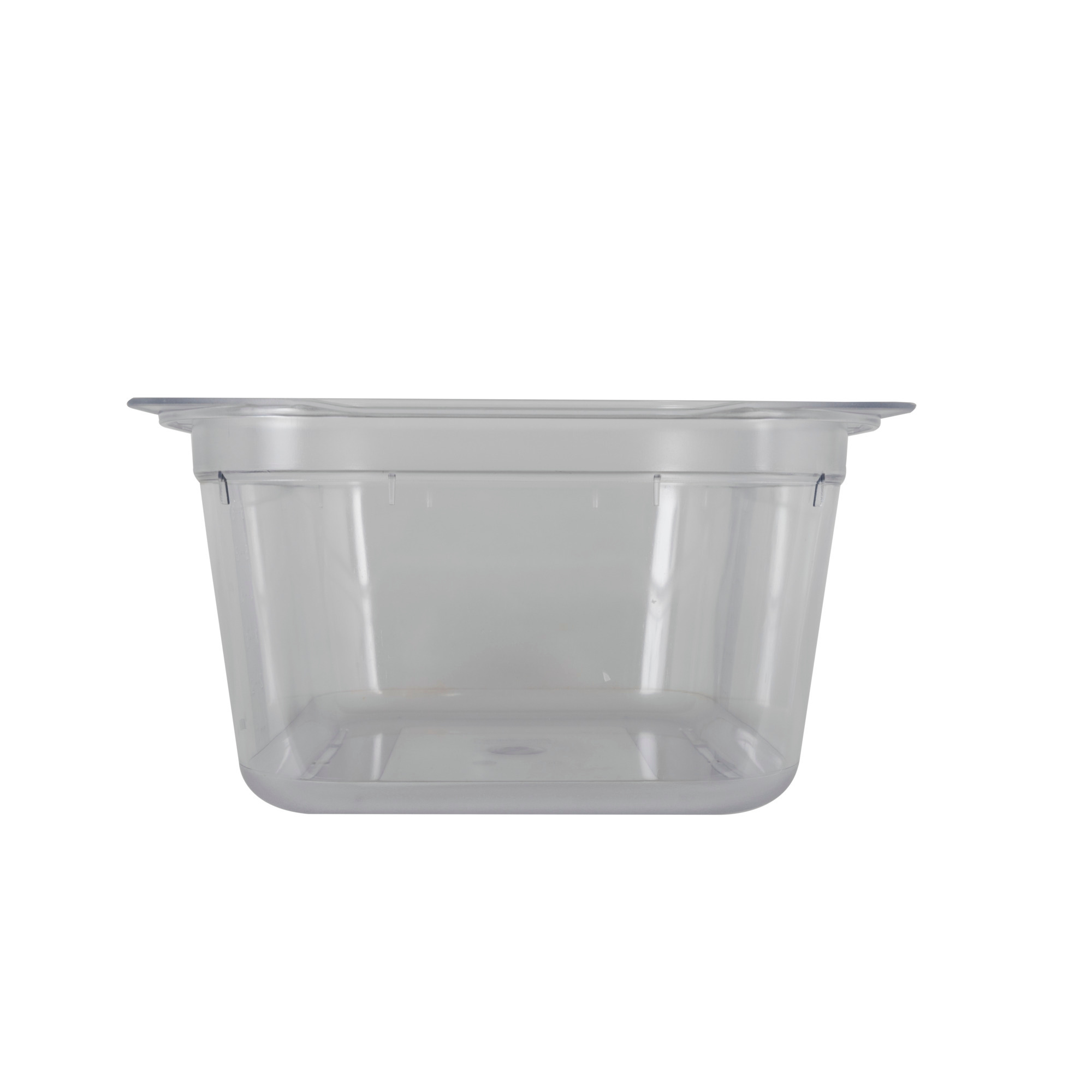 Der stabile Polycarbonat-Behälter – ideal für die standardisierte Lagerung, Präsentation, Vorbereitung, Aufbewahrung und Ausgabe von Kaltspeisen – in sieben verschiedenen Größen und bis zu vier Tiefen verfügbar, ohne Griffe, passend mit dem transparenten Poly-Deckel und durchgängig kompatibel mit den GN-Behältern und -Deckeln aus Edelstahl.