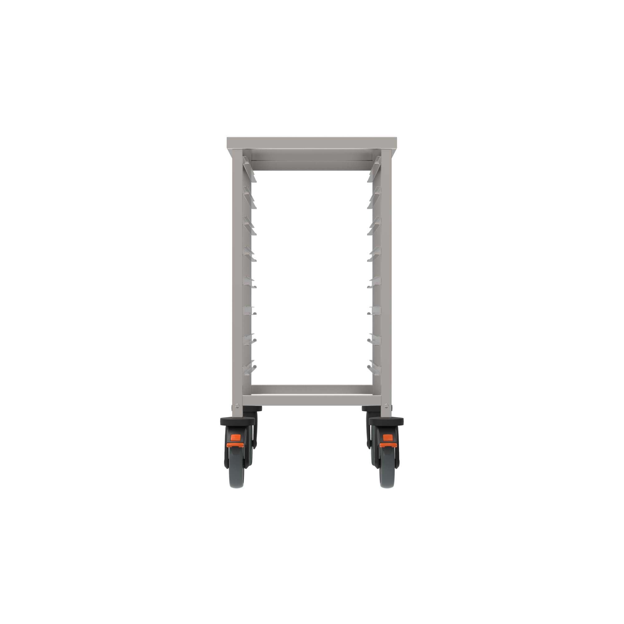 Der stabile Regalwagen eignet sich zum Transport, Aufbewahren, Abräumen oder Befördern von Speisen im GN-System – ein unkomplizierter, mobiler Helfer. Mit Längseinschub.