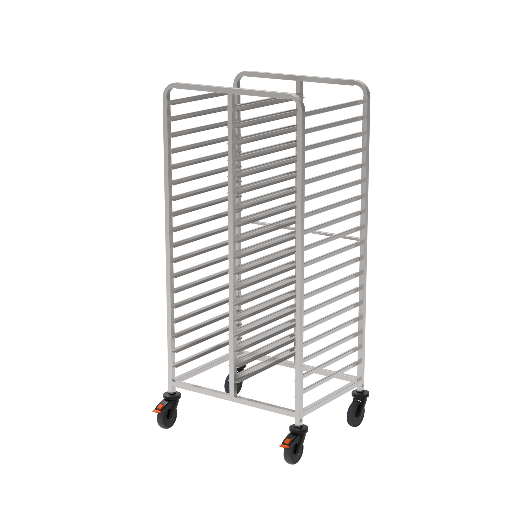 Der stabile Regalwagen eignet sich zum Transport, Aufbewahren, Abräumen oder Befördern von Speisen im GN-System – ein unkomplizierter, mobiler Helfer. Durch die 2-teilige Ausführung steht die doppelte Anzahl an Auflageschienen zur Verfügung.
