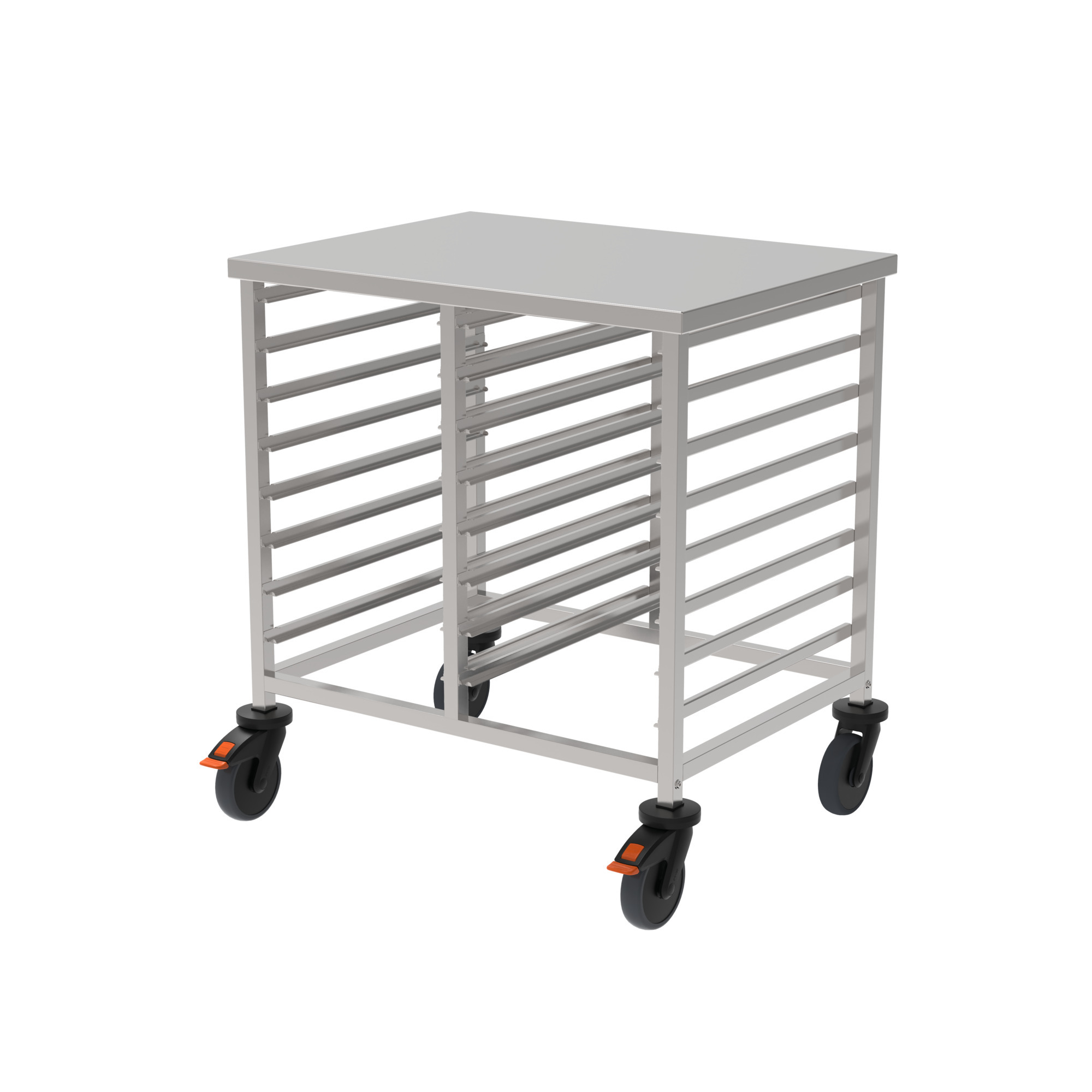 Der stabile Regalwagen eignet sich zum Transport, Aufbewahren, Abräumen oder Befördern von Speisen im GN-System – ein unkomplizierter, mobiler Helfer. Durch die 2-teilige Ausführung steht die doppelte Anzahl an Auflageschienen zur Verfügung.
