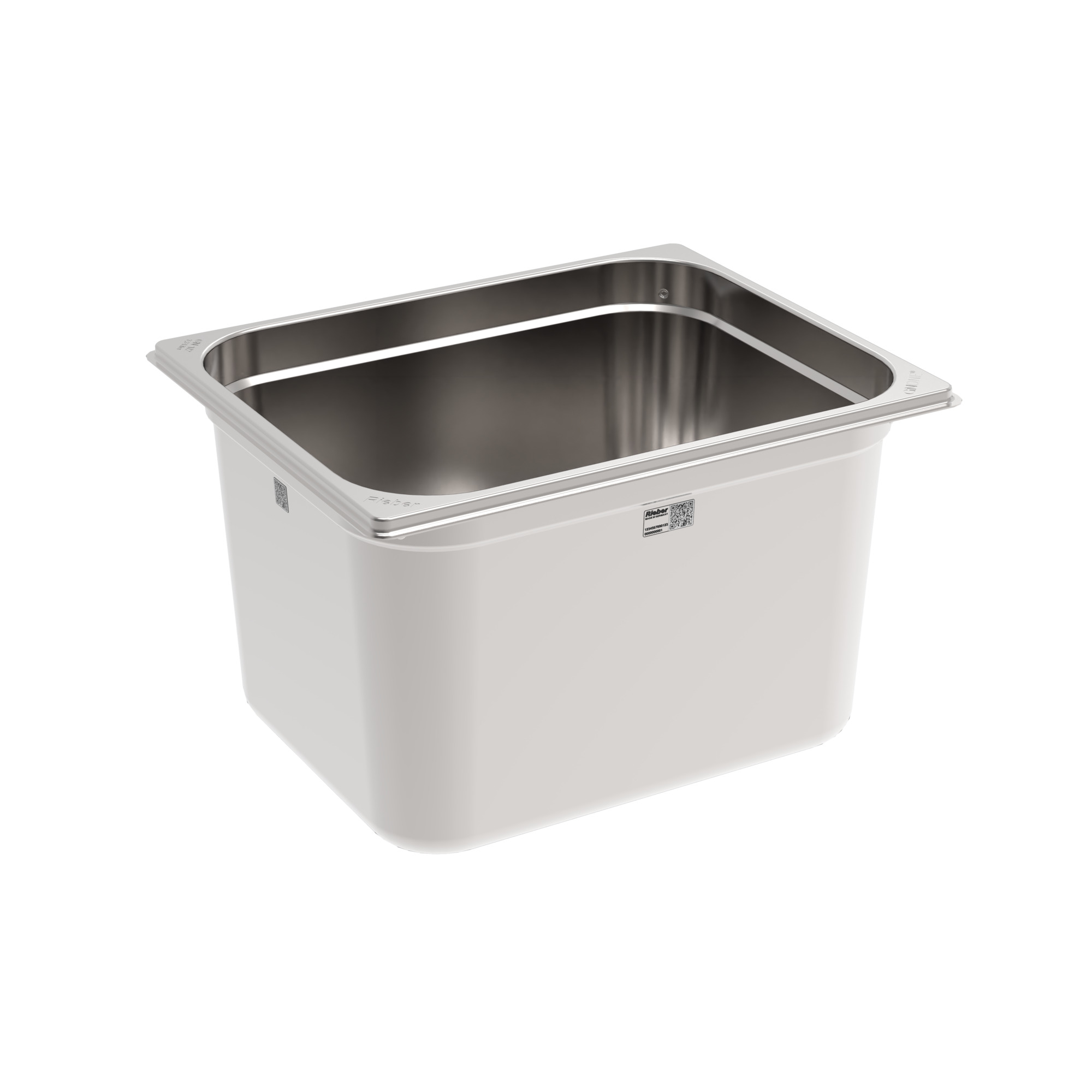 Ideal zum hygienischen und standardisierten Lagern, Aufbewahren, Transportieren und Ausgeben von Speisen. Mit praktischen Noppen an allen 4 Ecken erhältlich in den Größe GN 1/1, 2/3, 1/2, 1/3 und den Tiefen 55, 65, 100, 150, 200 mm, mit oder ohne Fallgriffe, durchgängig kompatibel in allen GN-Systemen und -Produkten.
