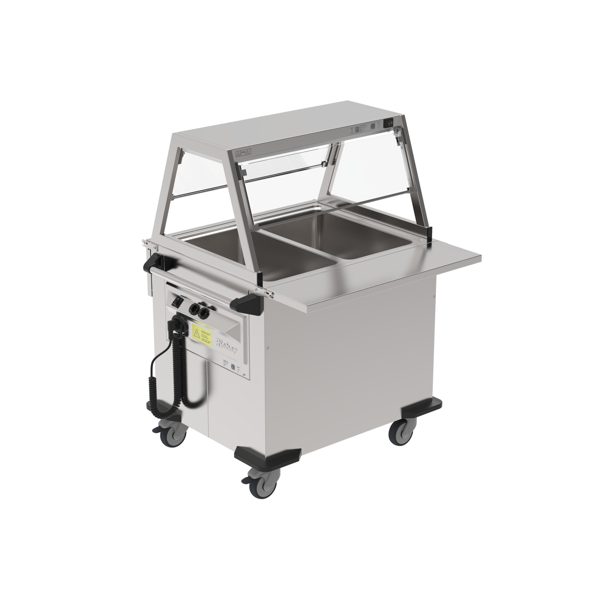 Der robuste Edelstahlwagen mit 2 getrennt regelbaren, elektrisch beheizten GN 1/1 Warmhaltewannen, dient zum sicheren Transport, Verteilen und Ausgeben von Speisen im GN-System. Der universale Kinder-Buffet-Wagen, für beste Speisenqualität in Kitas und Schulen. Zuverlässig sowohl nass wie auch trocken beheizbar, bei trockener Beheizung signifikante Energieeinsparung und geringerer Reinigungsaufwand der Wannen.
