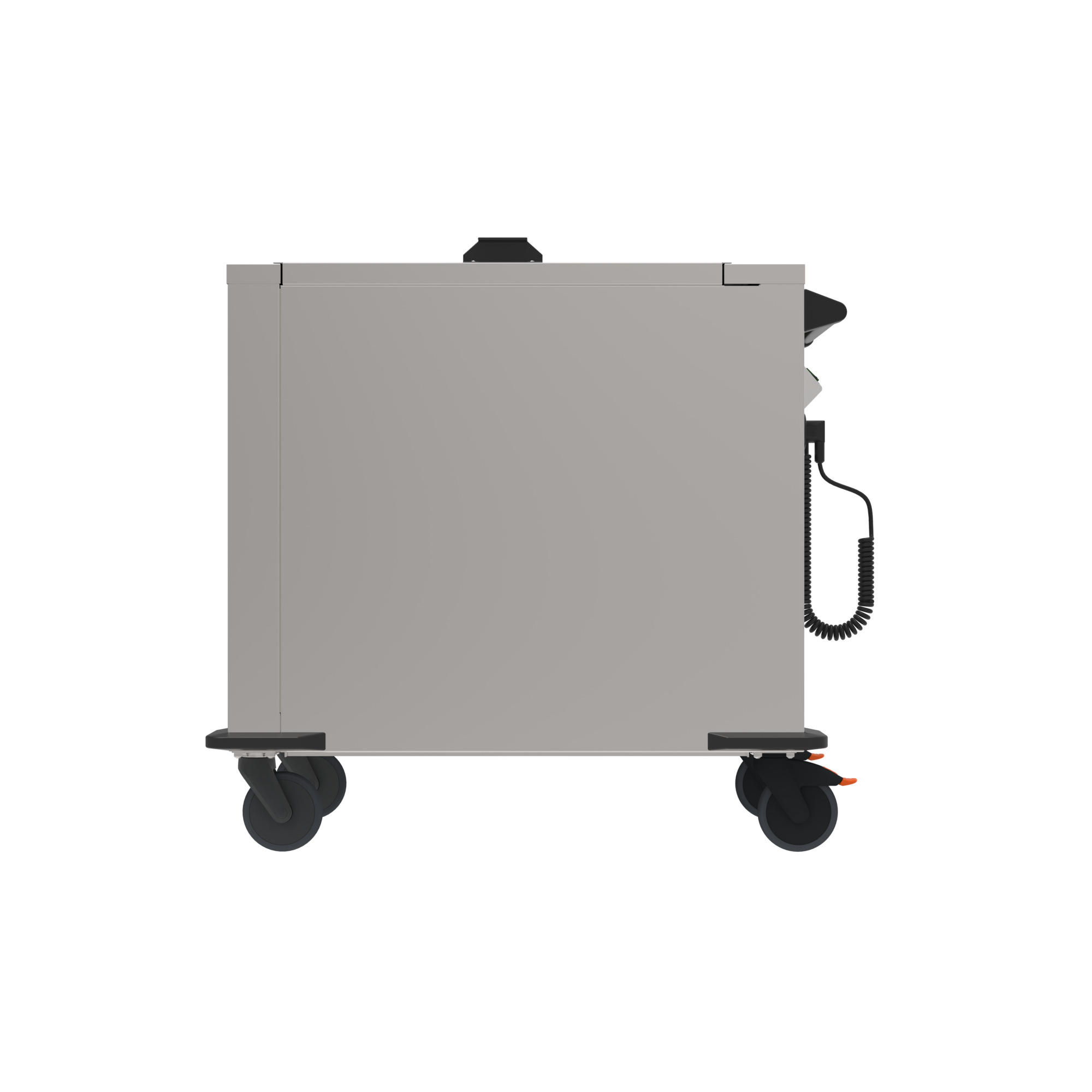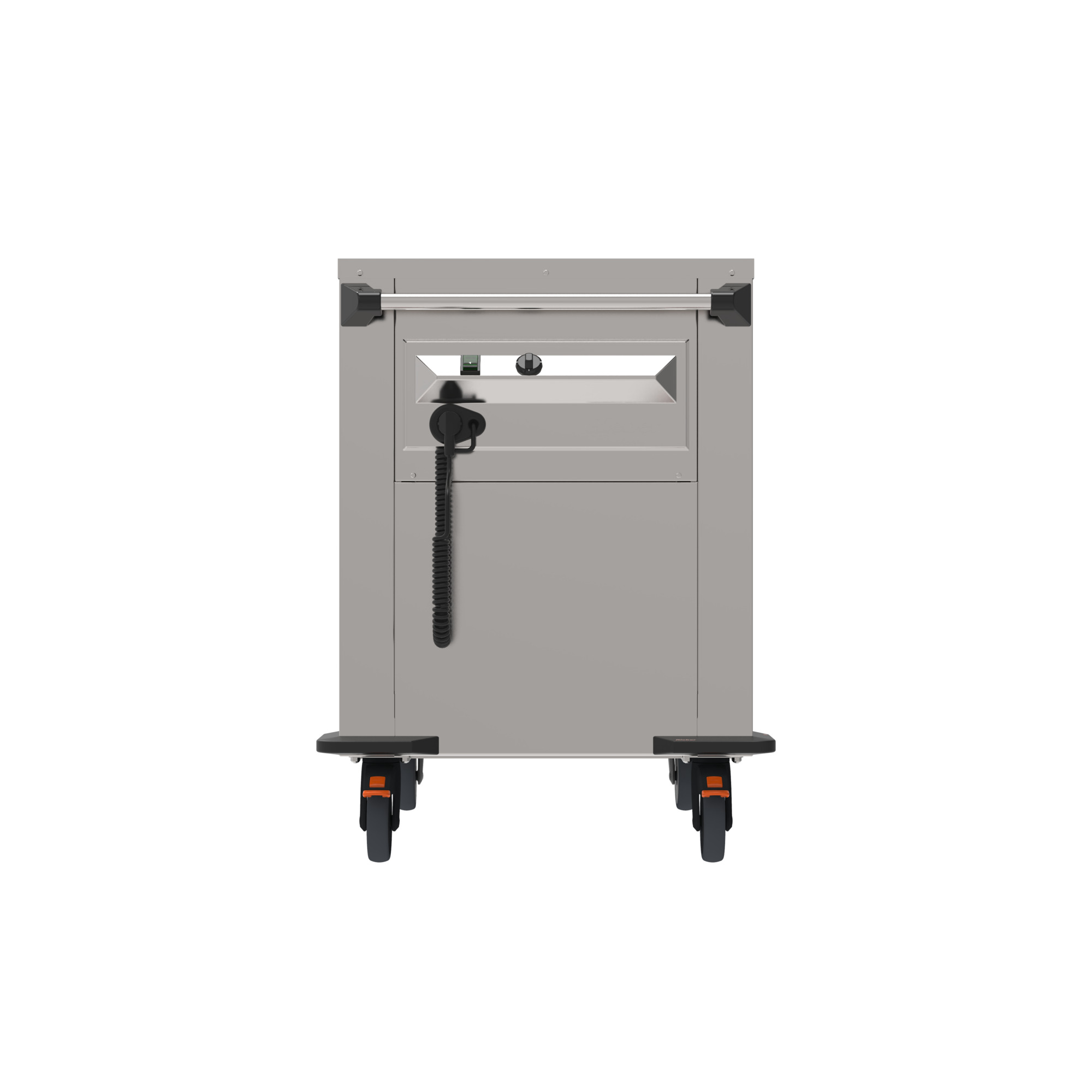 Mobil mit rostfreien, feststellbaren Rollen und Sicherheitsschiebegriff.