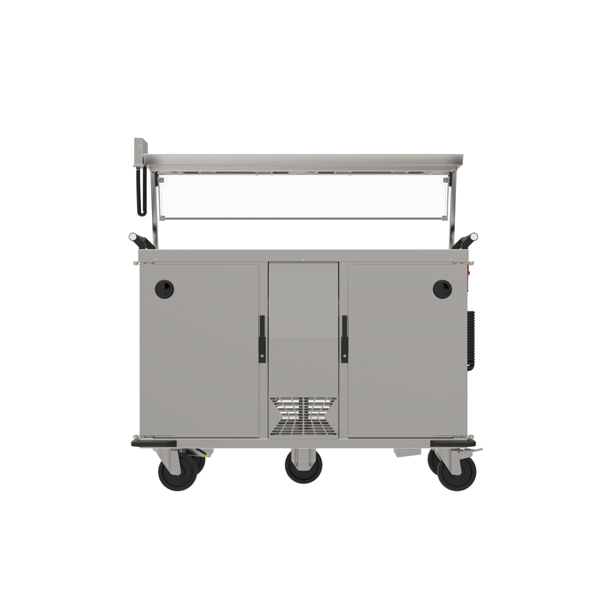 Die Regiostation, das optimale Transport-, Verteil- und Regeneriergerät für die Stationsversorgung sowie ausgestattet für vielfältige anderweitige Einsatzmöglichkeiten. Mit der Fächerkombination aus Kühlung und Regeneration wird eine vollständige Versorgung vom Frühstück über das Mittagessen bis hin zum Abendessen ermöglicht. Durch die flexible Programmierung können beliebig viele Warmhalte-/ Regenerier-/ und Kühlzyklen gespeichert, aktiviert und voll automatisch abgespielt werden. Standardmäßig mit integrierter Licht-/ Wärmebrücke & unabhängiger Steuerung.
