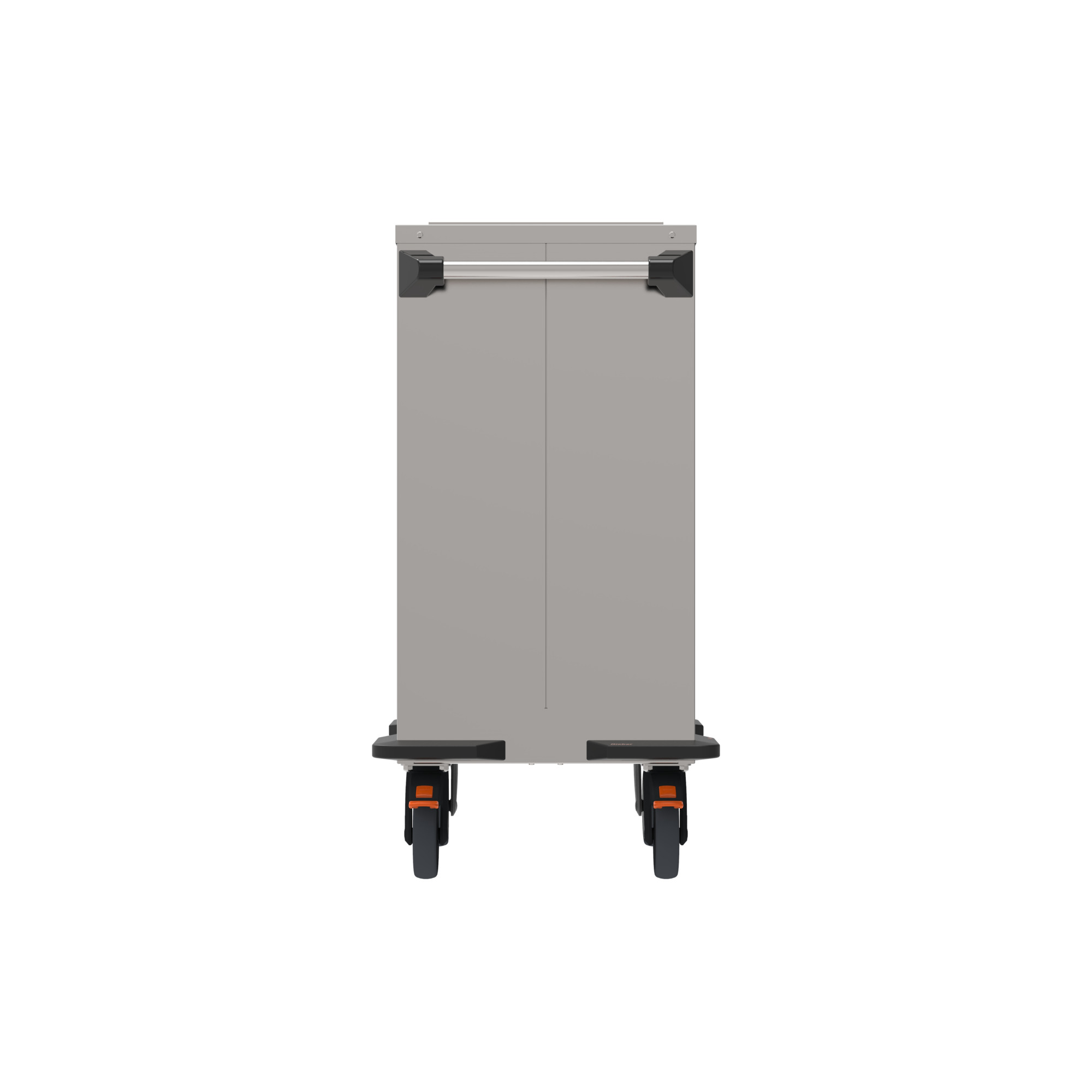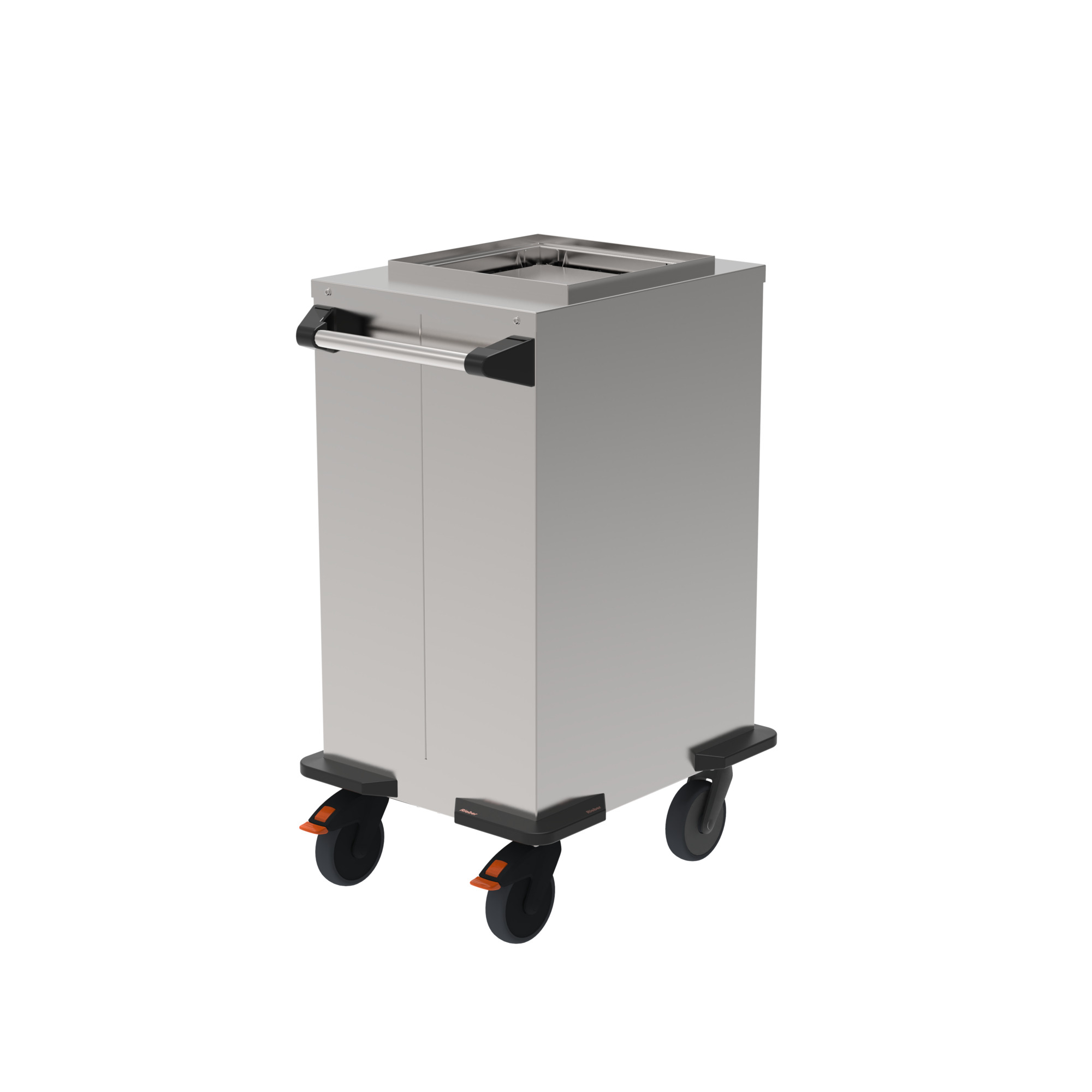 Mobil mit rostfreien, feststellbaren Rollen und Sicherheitsschiebegriff.