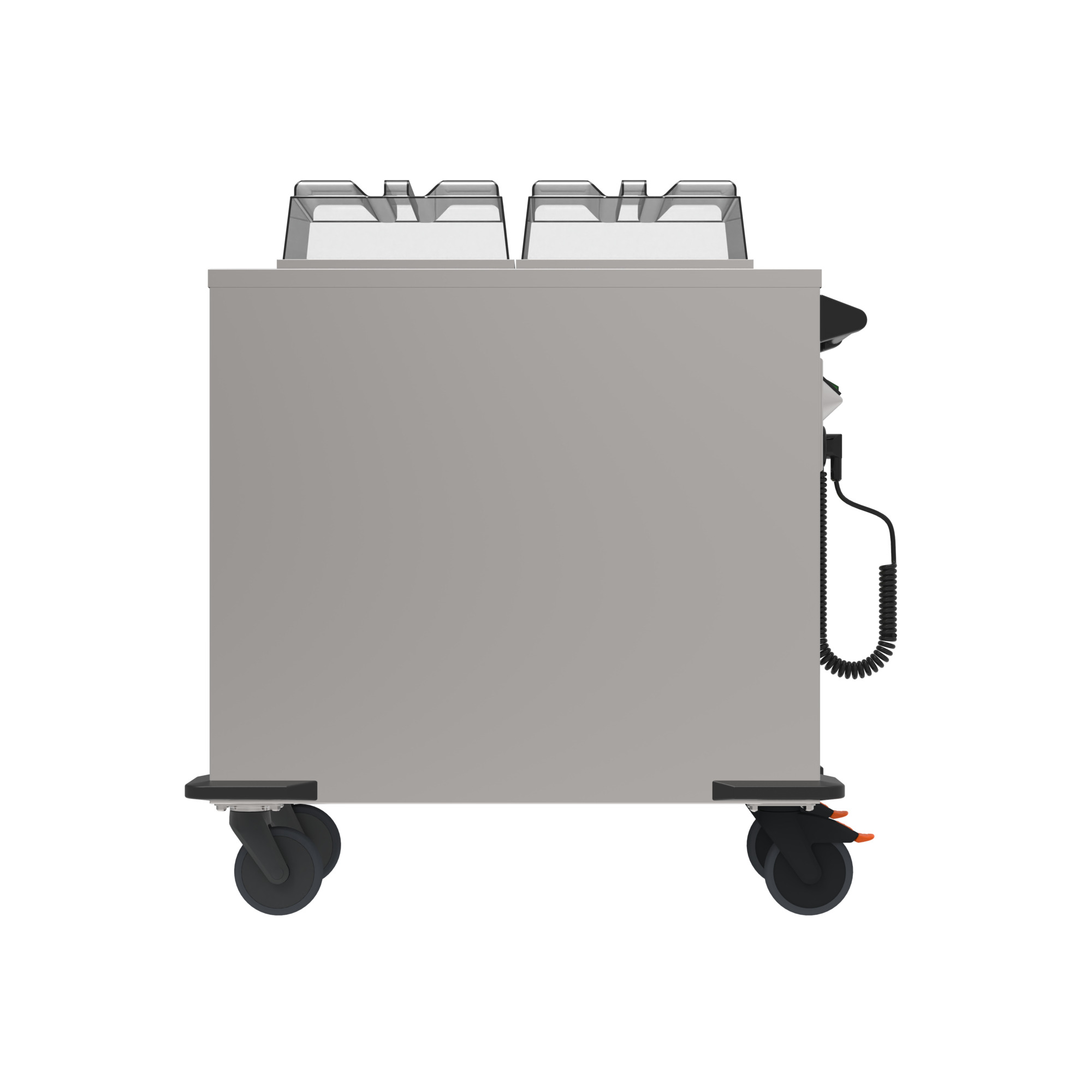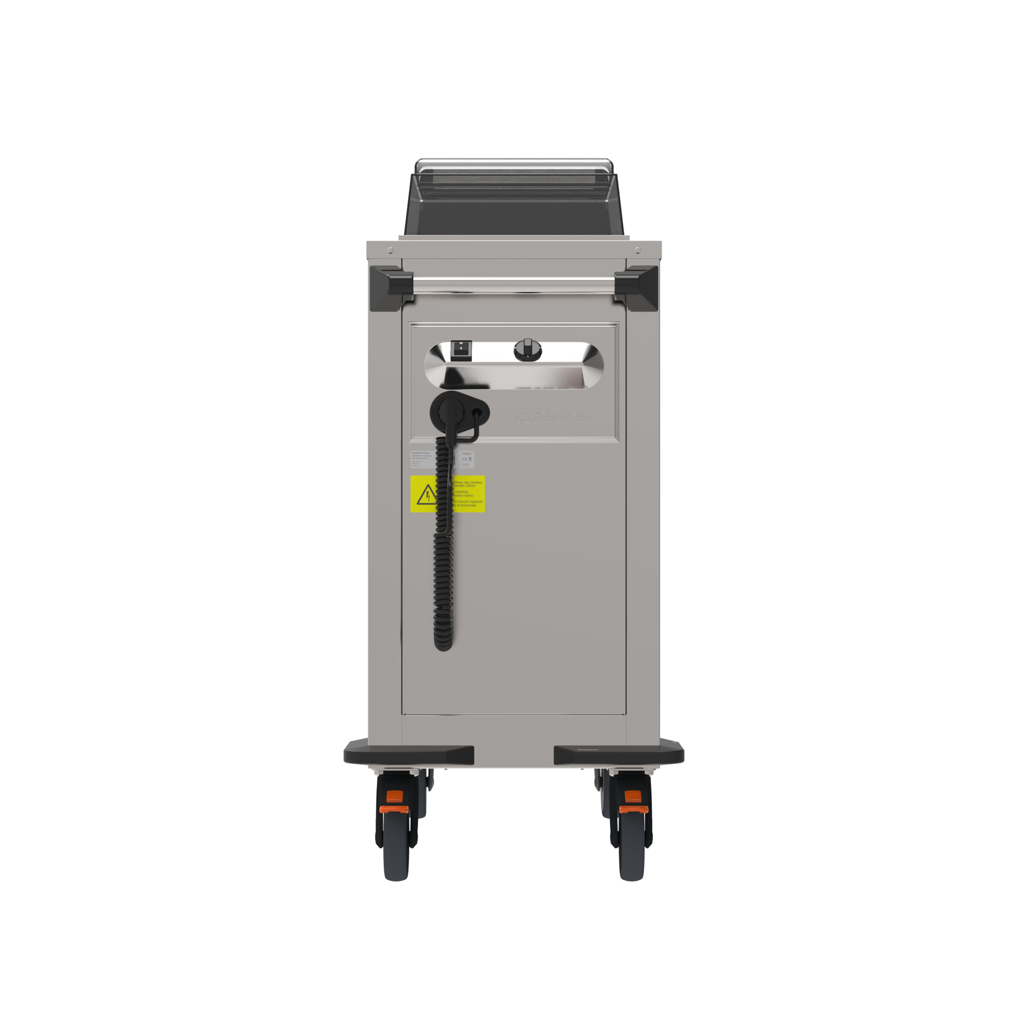 Mobil mit rostfreien, feststellbaren Rollen und Sicherheitsschiebegriff.