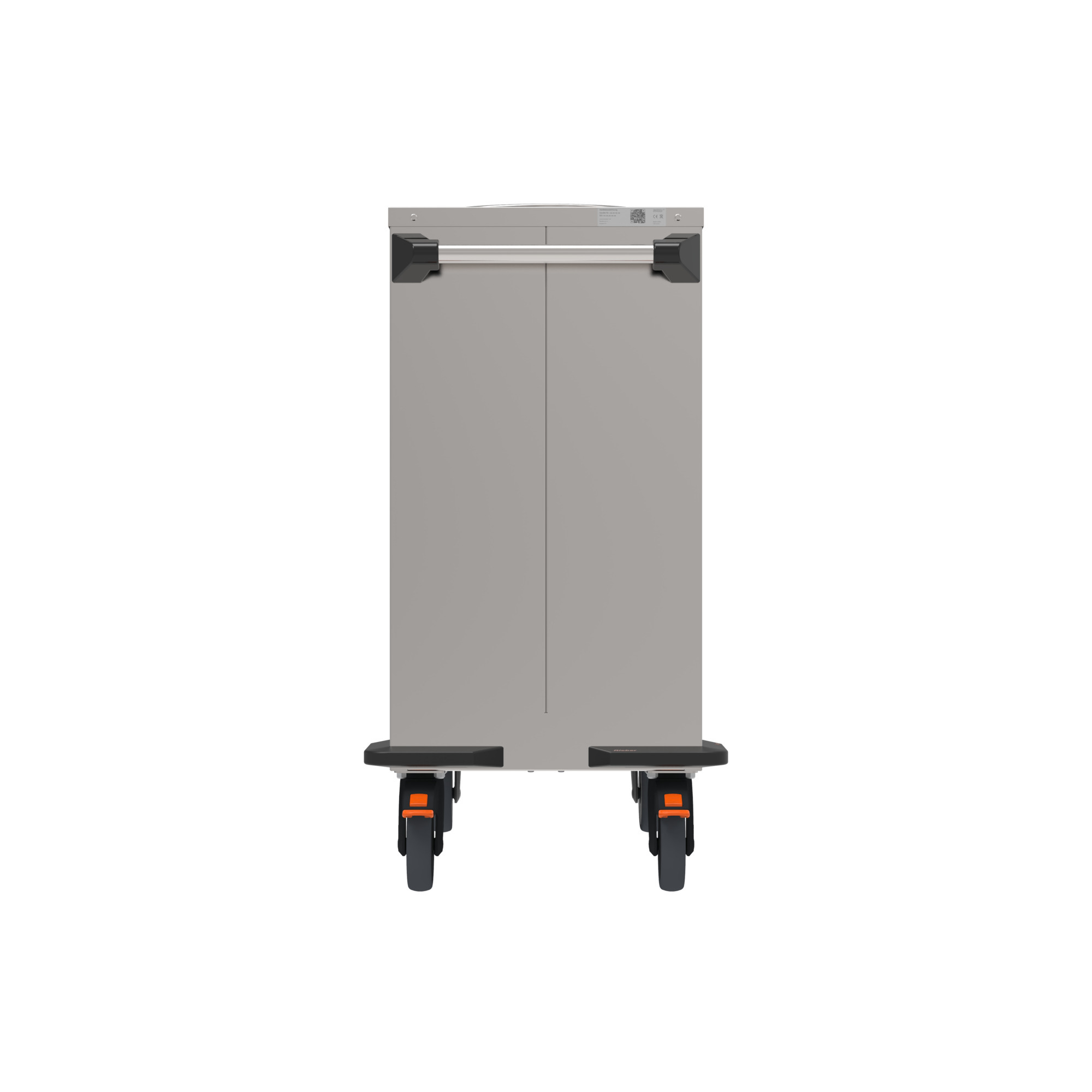 Mobil mit rostfreien, feststellbaren Rollen und Sicherheitsschiebegriff.