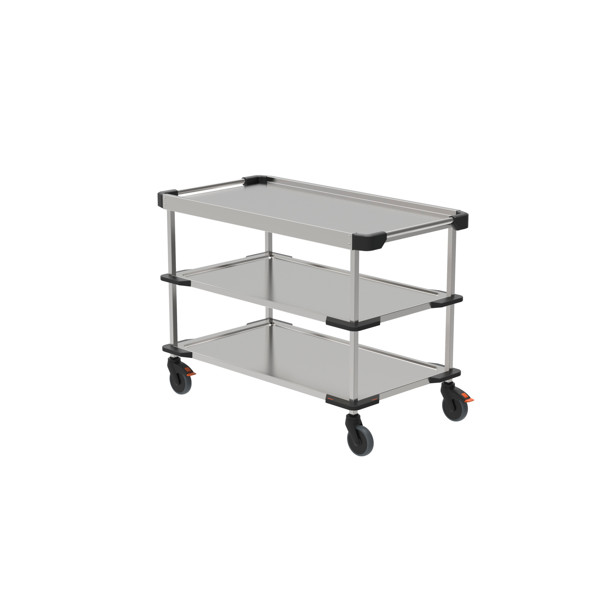 Der stabile Servierwagen mit verstärktem oberem Bord eignet sich für jeglichen Transport, ob zum Servieren, Abräumen oder Befördern – ein unkomplizierter, mobiler Helfer.