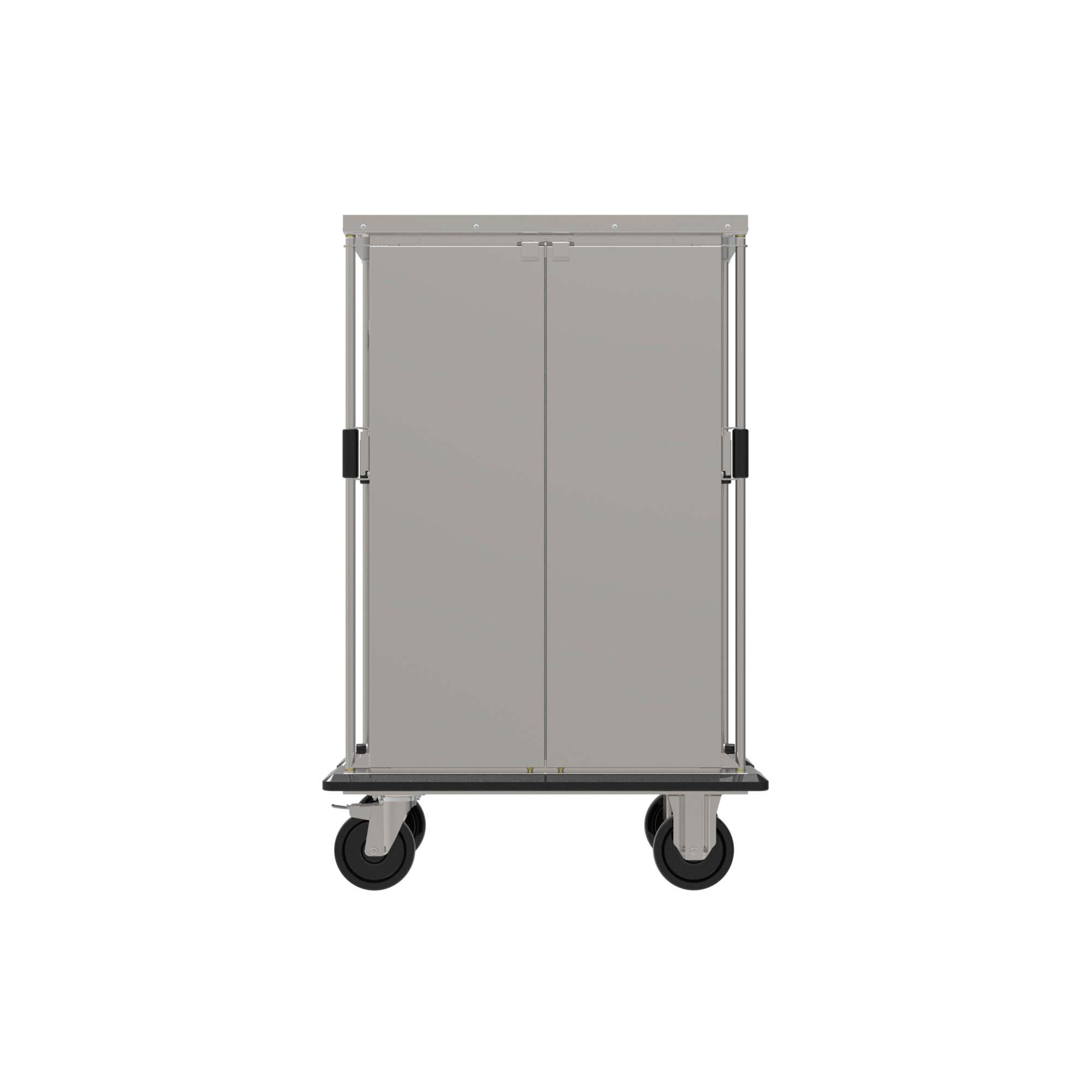 Der hochwertige Tablettwagen aus Edelstahl zum Transportieren tablettierter Speisen. Die äußeren Innenwände mit tiefgezogenen Auflagesicken sind mit einer Kippsicherung ausgestattet. Der Tablettwagen ist individuell durch vielfältiges Zubehör erweiterbar, unter anderem mit einer voll verschweißten Galerie, einem Kupplung-Deichsel-System, Kartenhalter oder einem umlaufenden Stoßschutz am Wagendach.