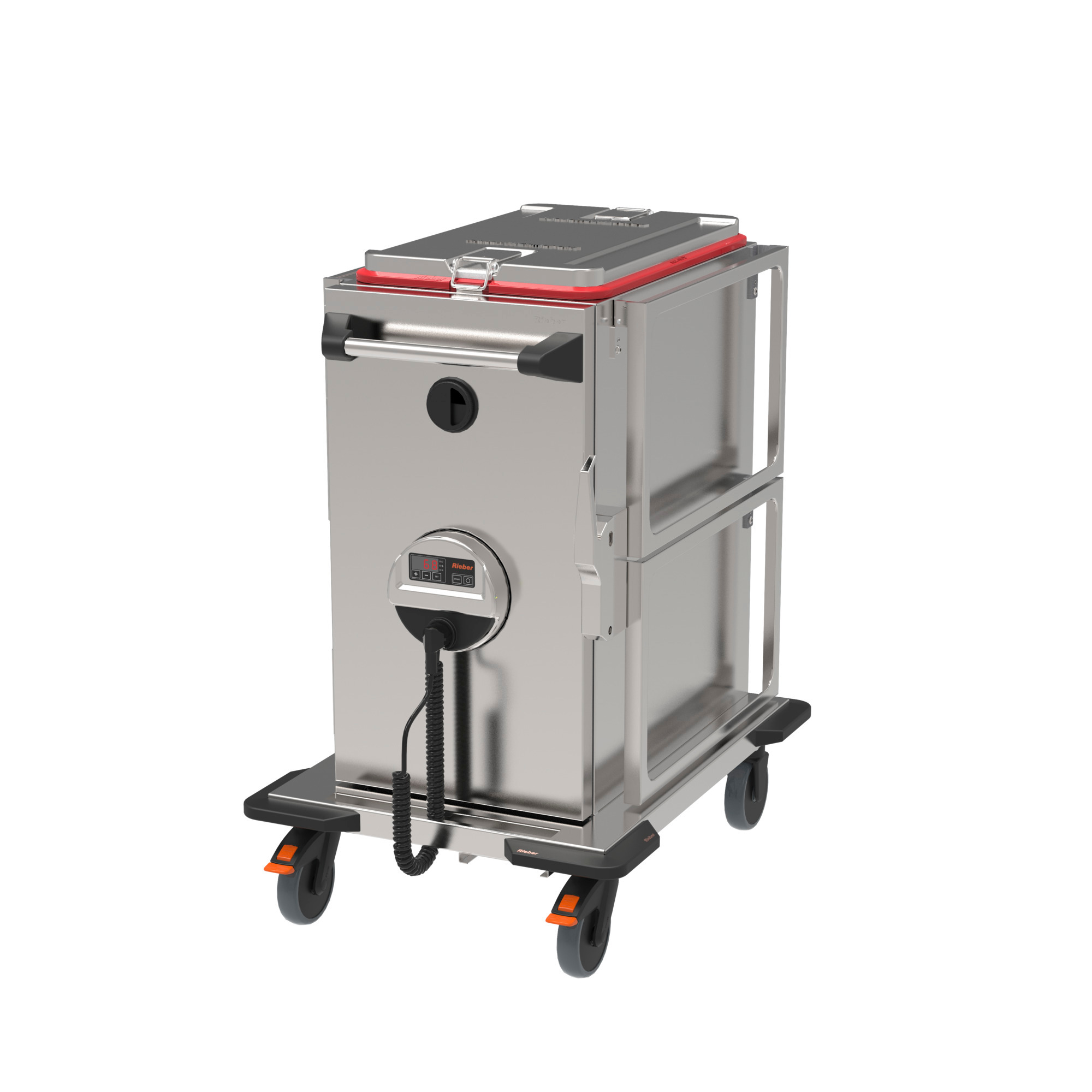 Alle Rieber thermoport® aus Kunststoff und Edelstahl sind miteinander kombiniert stapelbar und auf den Transport- bzw. Ausgabewagen abstellbar. Bestückung mit GN-Behältern und GN-thermoplates®, in Kombination mit dem transportsicheren wasserdichten Steckdeckel oder für Niedertemperaturgaren im Vakuum mit dem vaculid®-Deckel.