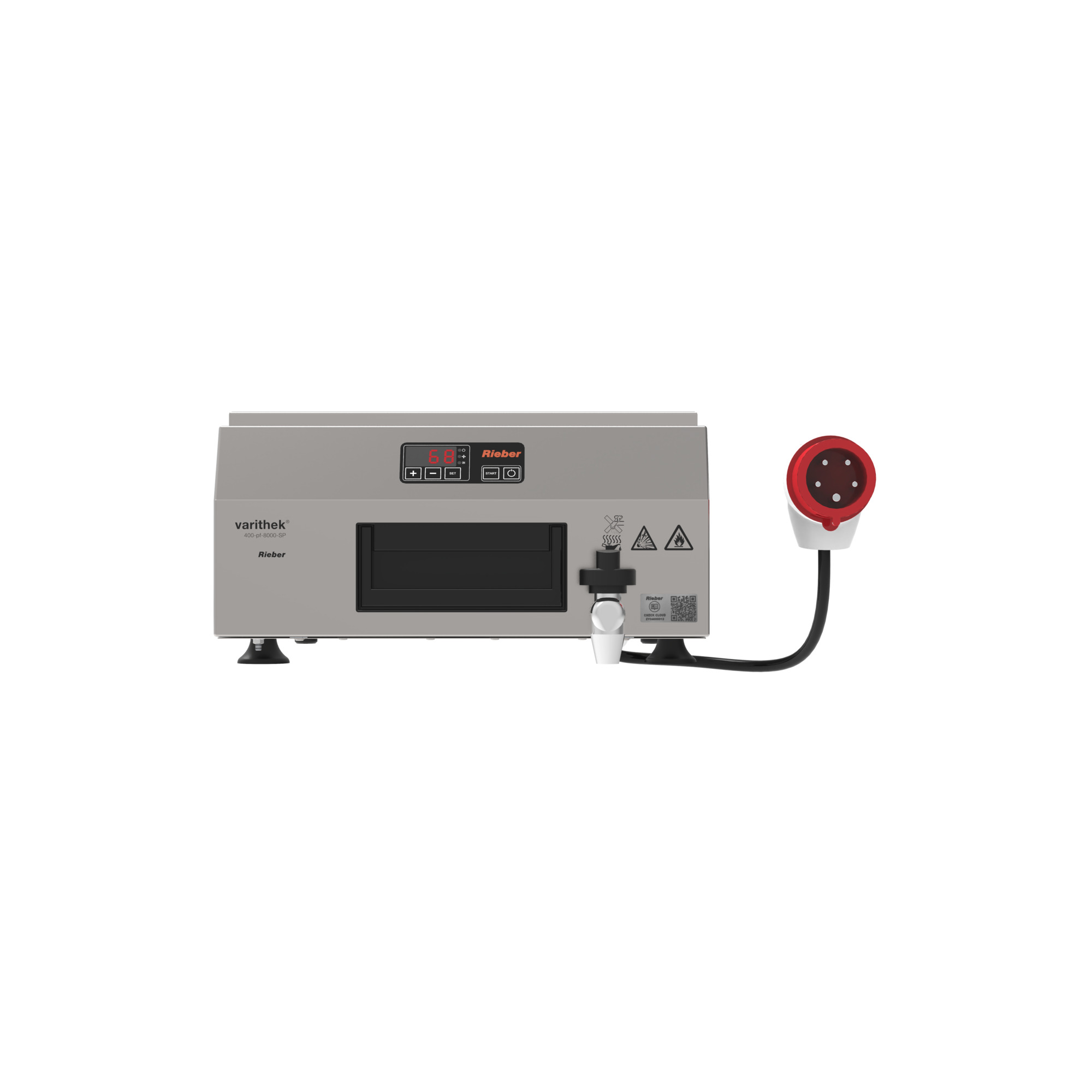 Bedienelement an der schrägen Stirnfläche mit digitaler Temperatursteuerung.